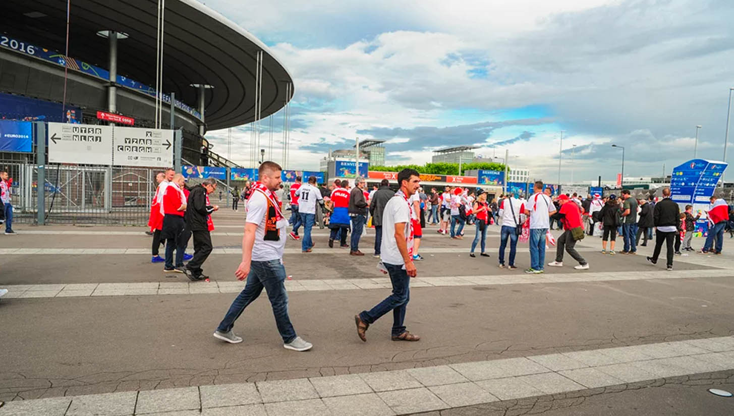 In a more beautifully brutalist fashion, Przemek brings the natural energy that steams from the stadium with both sets of fans both painted and vocal. Another example of football bringing people together with celebratory tones running throughout, this tournament is underway and France is providing a plentiful host. The Stade de France the location for this fixture, we go again.