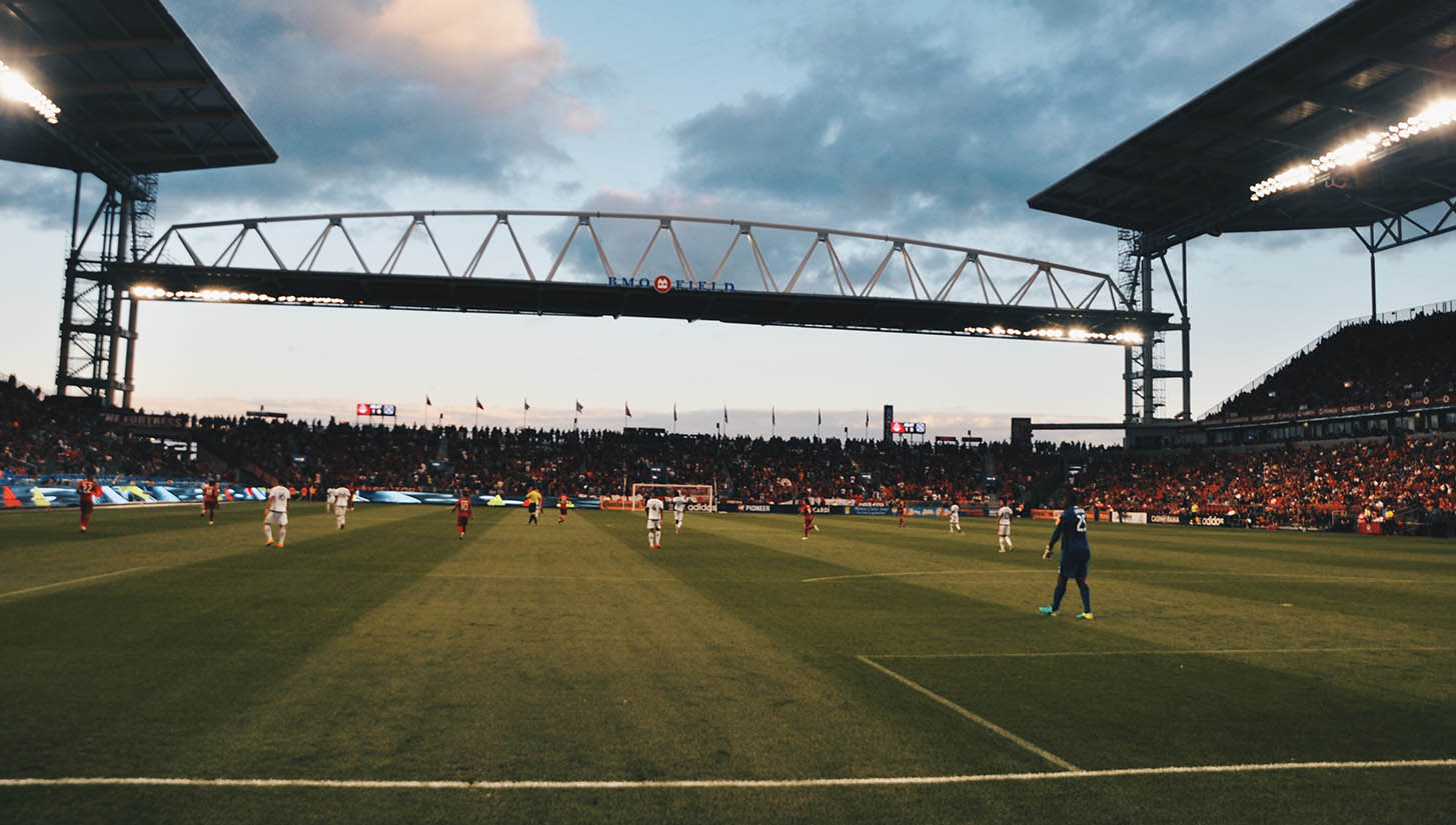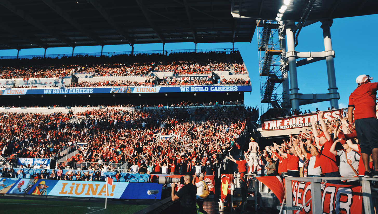 It took just a single goal to ensure that the home fans left the BMO Field happy. Alive with energy this series of images captures both the spirit and style of the MLS on and off the pitch. Flags and flairs lofted high accompanied with a backdrop that acts as architectural wonderland. Scenes.