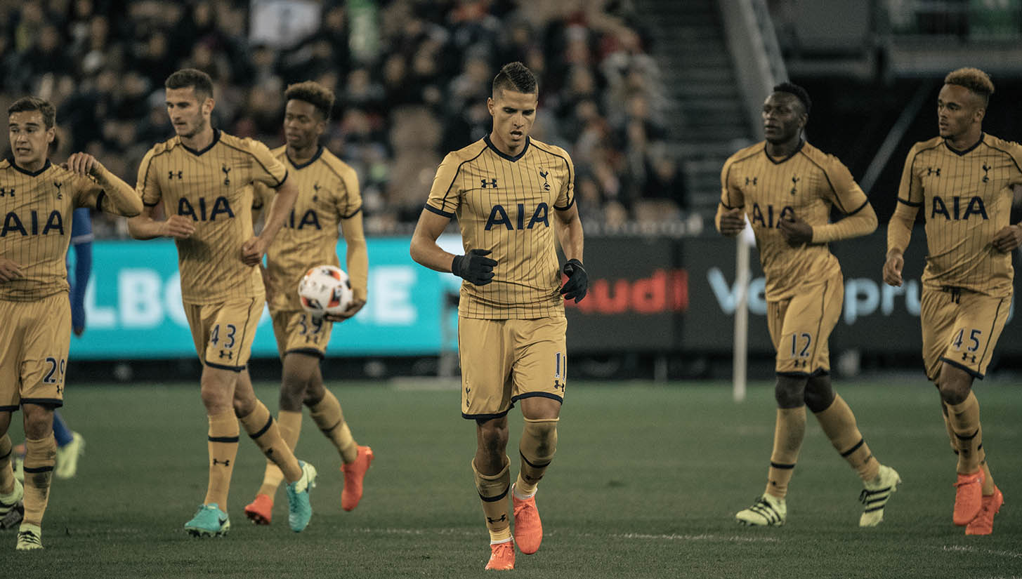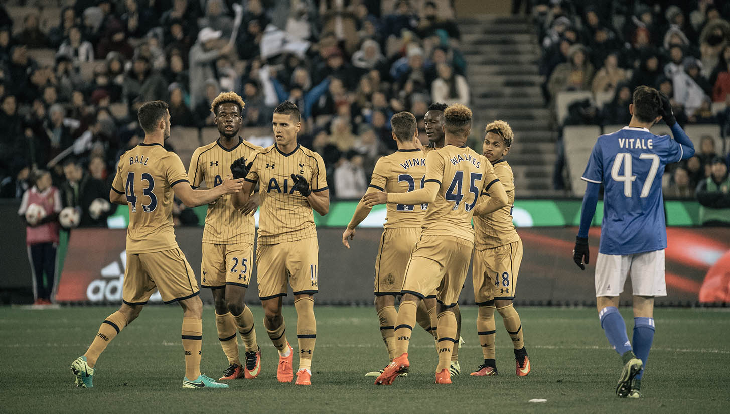 Sporting their rather fetching bronze-mustard mash-up of a third kit, Spurs touched down in Melbourne to sprinkle their pre-season prep work on the pitch up against Juventus. Taking in the sights pitch-side, this latest 'Framed' piece drops in from the International Champions Cup with style.