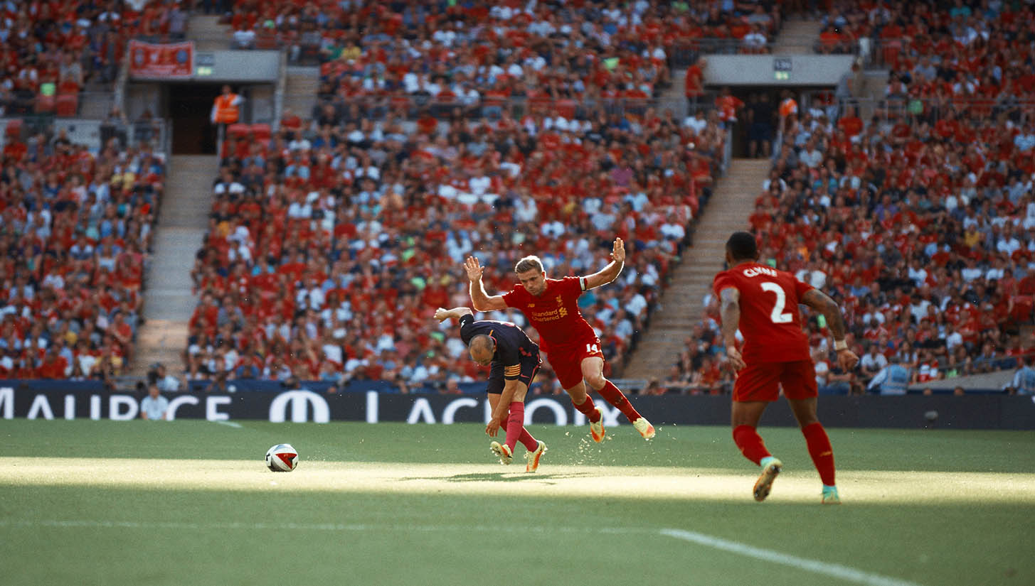Our latest 'Framed' feature shot by Elliott Wilcox, was the perfect curtain raiser and Wembley warm up for the Community Shield. A game that saw Liverpool take Barcelona to church and back wheeling away as winners with a margin of four goals, it made for glorious viewing. A scoreline that is emphatically foreign to the football powerhouse that is Barcelona, talk about a kicking.