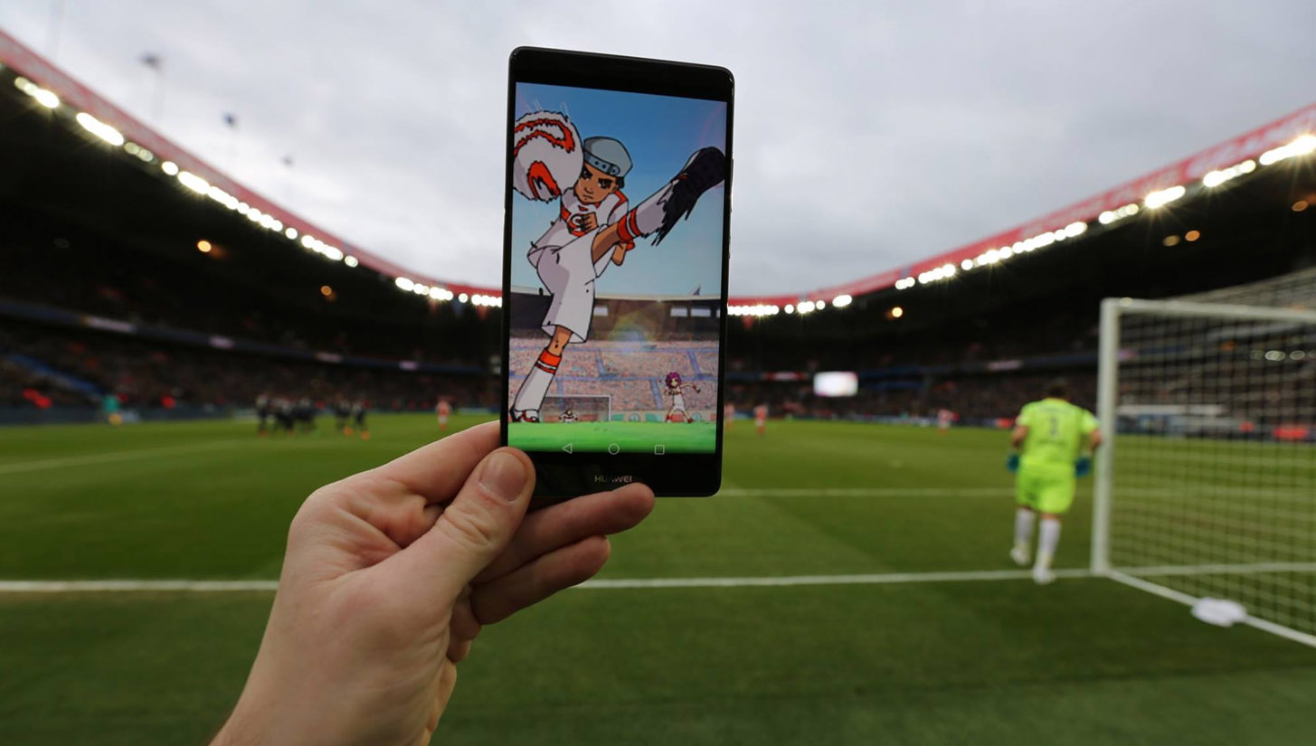 A smart approach that sees the photographer take pictures of pictures, only the pictures on his phone put an image in the natural position of what would be a player. From Zlatan hitting up a corner flag to animated characters mid flight, it's a smart link up.