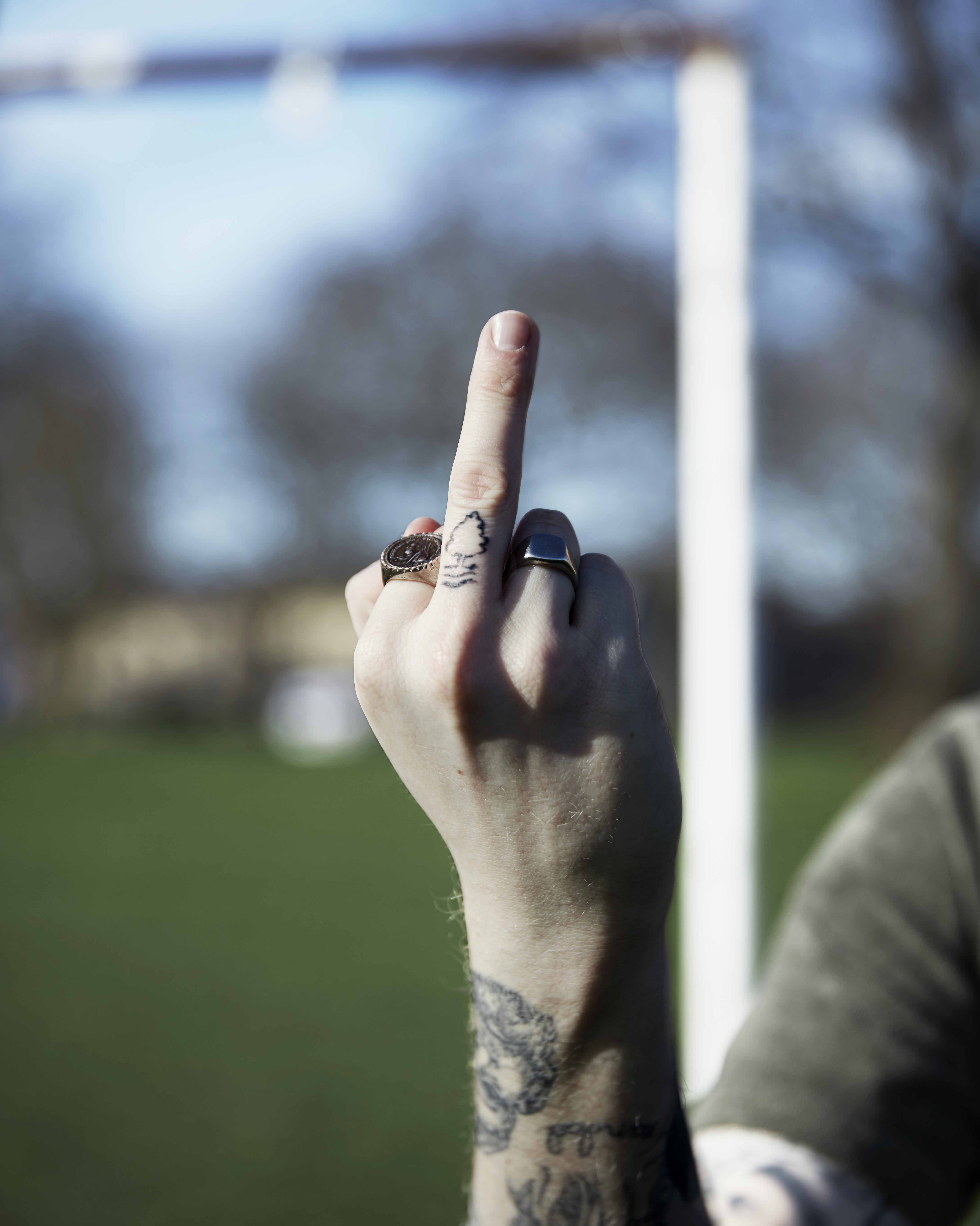As you can see they're all pretty shit. Most of my tattoo's are made up on the spot, so I never know what I'm going to come out with. For the Van Hooijdonk one, My friend shown me his Euro 2004 sticker earlier in the day, and I'd always wanted a Forest player, so that was that. The Psycho 3 one, my dad has got the same thing in the same place. As a kid I'd always see it on the back of his neck when we was on holiday or something, and thought it was so hard and prominent. I have no idea where he got it done. Maybe prison? ha And the Forest flag on my middle finger just makes sense really doesn't it. A Forest Flag. On My Middle Finger. Done.