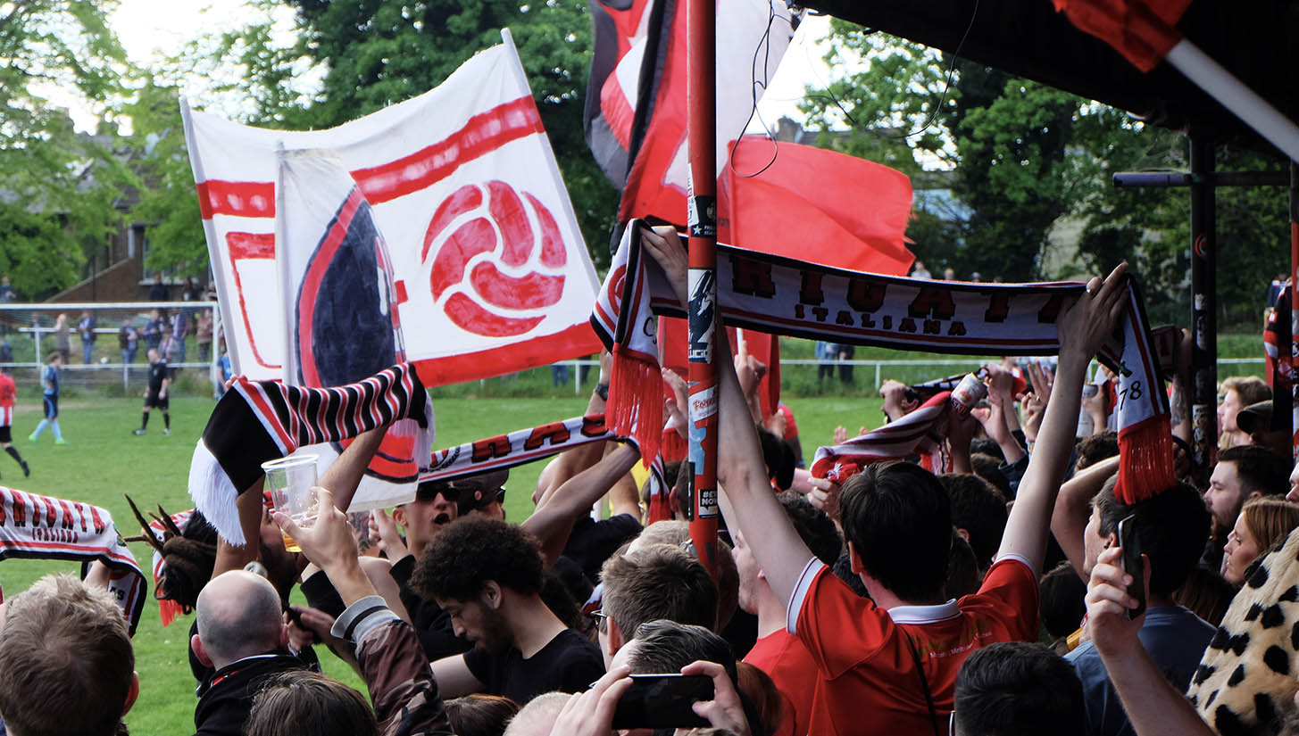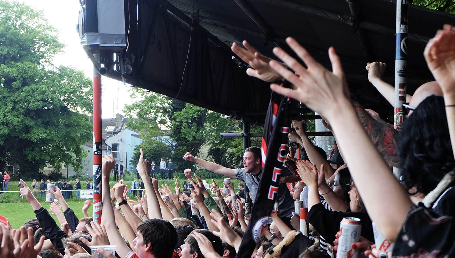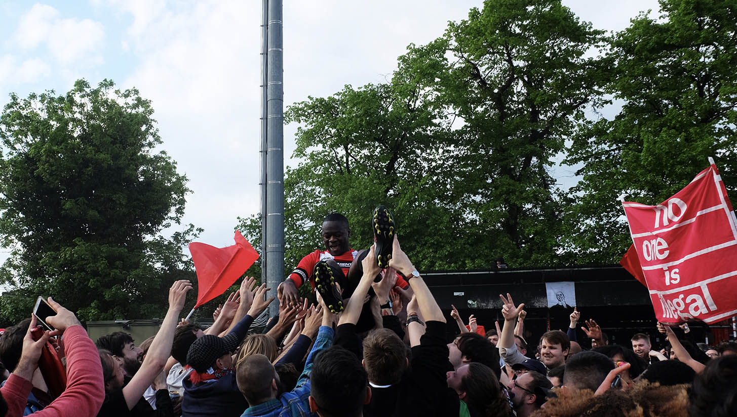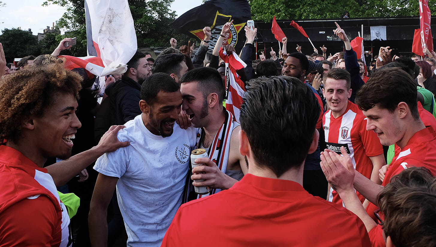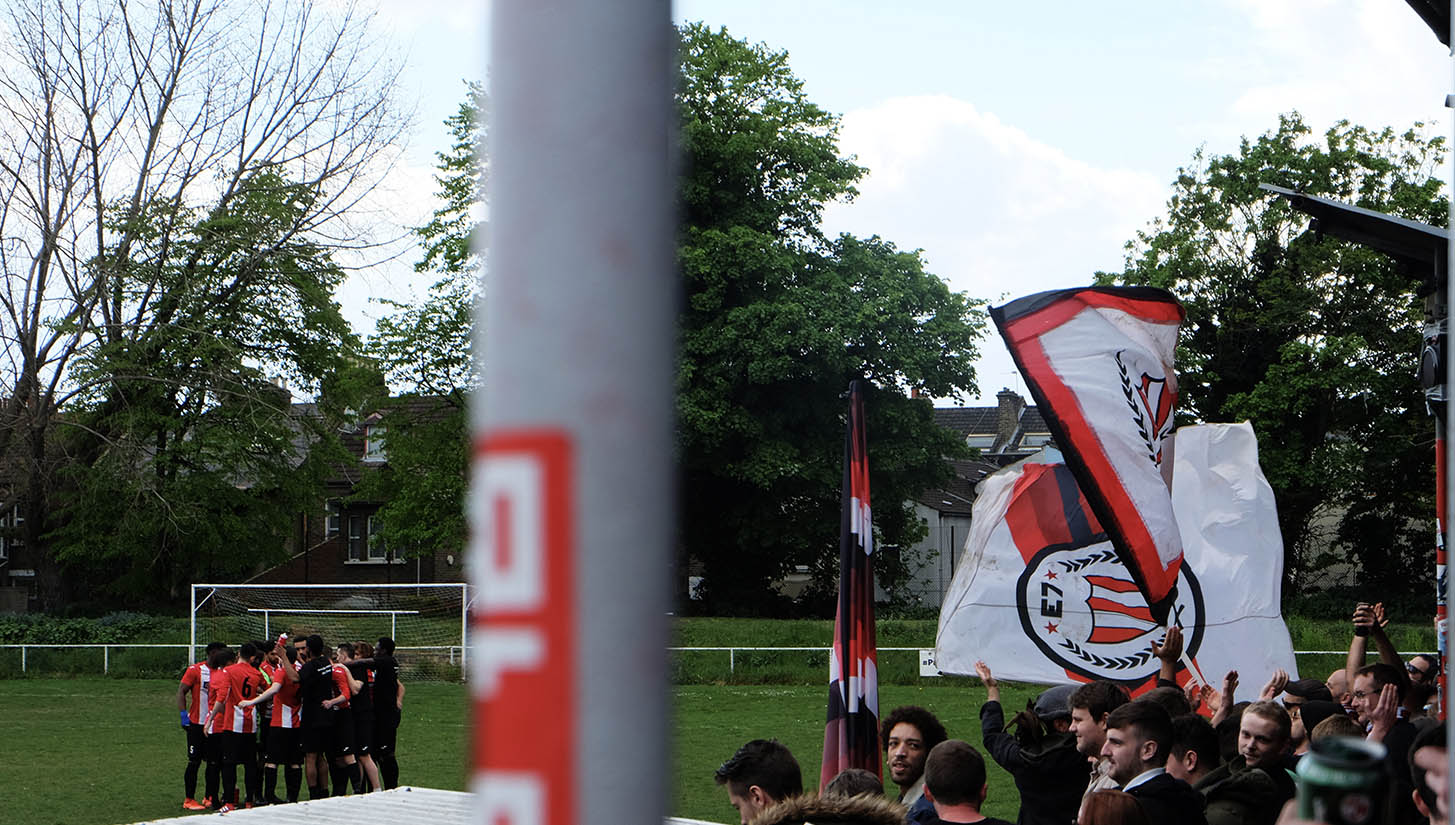 Where there is a local side, there is a local community. In the shape of Clapton F.C. the 'Ultras' flame burns bright for a side that has captured the imagination of many a local inhabitant. Flying on the shoulder as they secured promotion with an emphatic 7-0 showing, Jeremy Roturier was in the mix as the flairs were lit and the celebrations kicked off.