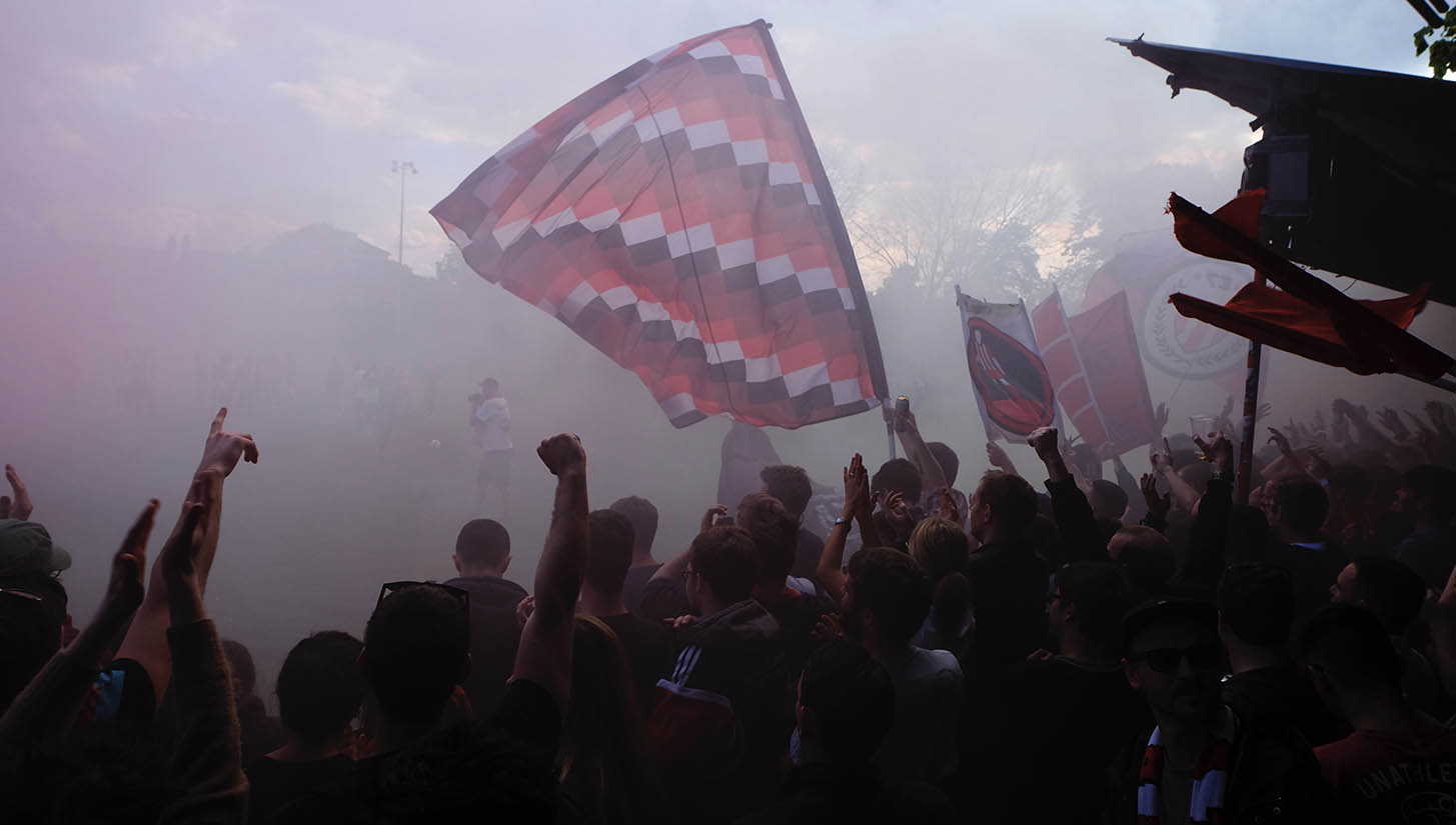"It's quite funny every time I go there, because you can see at the beginning of the game, there are the Ultras in the kop, and the other people hanging around without really taking part. They're just curious to find out how it's going to go. But as long as the game goes on, everyone is getting closer to the kop and start cheering as well. At the end of the game, you can be sure that the whole attendance ends up singing on the scaffolds. The fact that you can bring your own beers at the ground might help a little bit, but I believe it's mainly because people stand for similar values: authenticity, respect and acceptance of diversity."