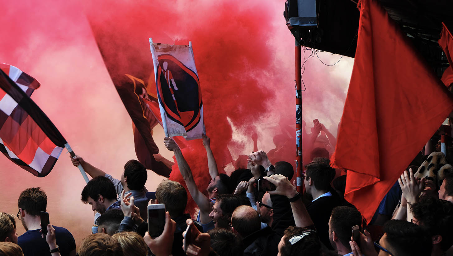 "Just want to be part of it! That's actually the hard part when you want to capture pictures at the same time. First because it's not really part of the culture of the Ultras to have photographers around, and mostly because you feel stupid with your camera in hand when you enjoy good atmospheres. You're tempted to drop it in your backpack, and go singing in the middle of the kop. But, to be fair, there are also so many emotions to capture, it's crazy. The flares are always impressive of course, but what makes the difference is the strong connection between the players and the fans. It's pretty unique, it feels like everyone belong to the same family. And as you can see on the pictures, when it comes to celebrating the promotion, there are no differences anymore. Players, fans, everyone comes together to enjoy the moment."