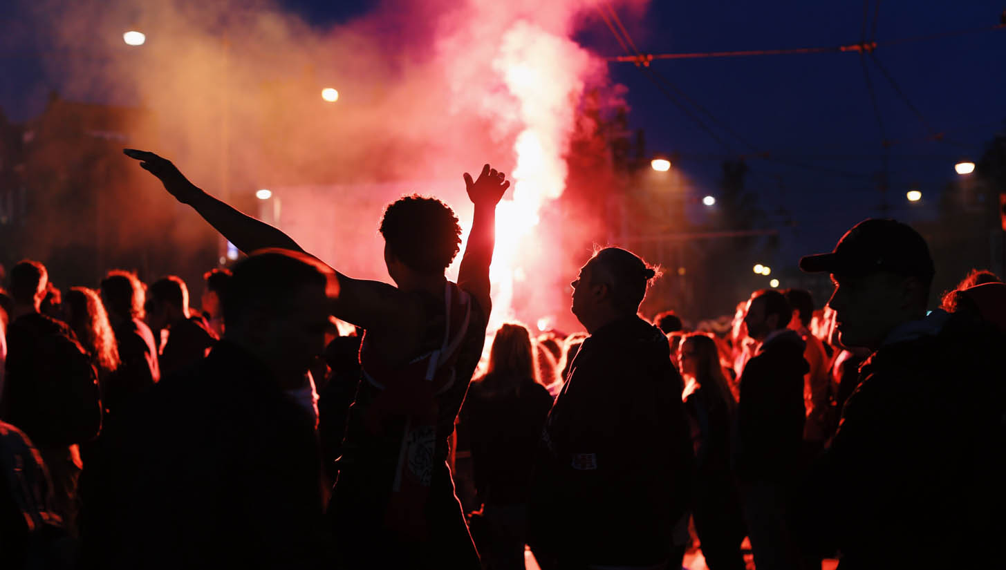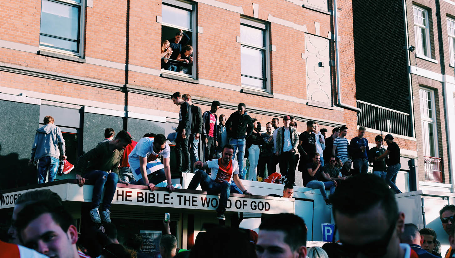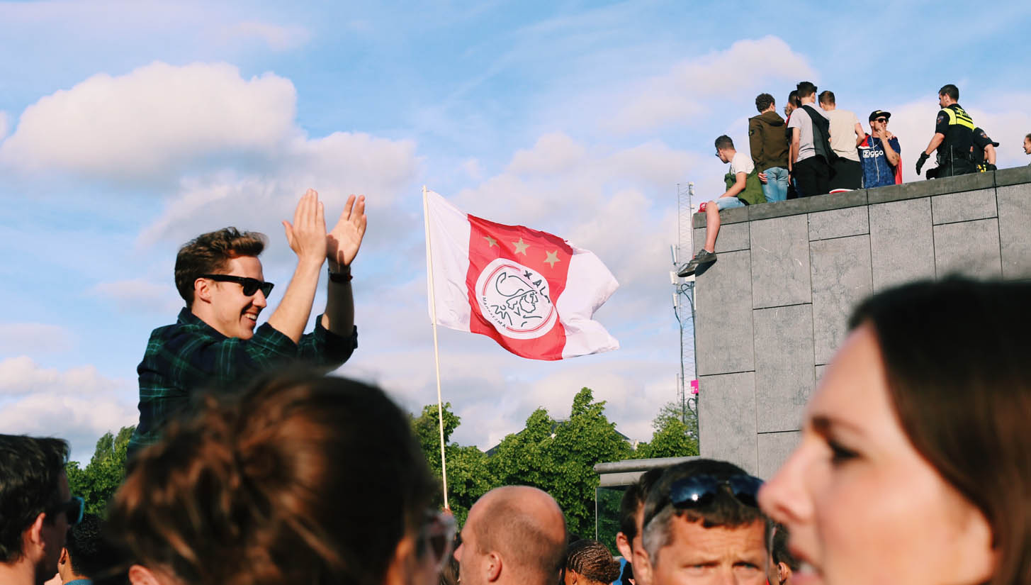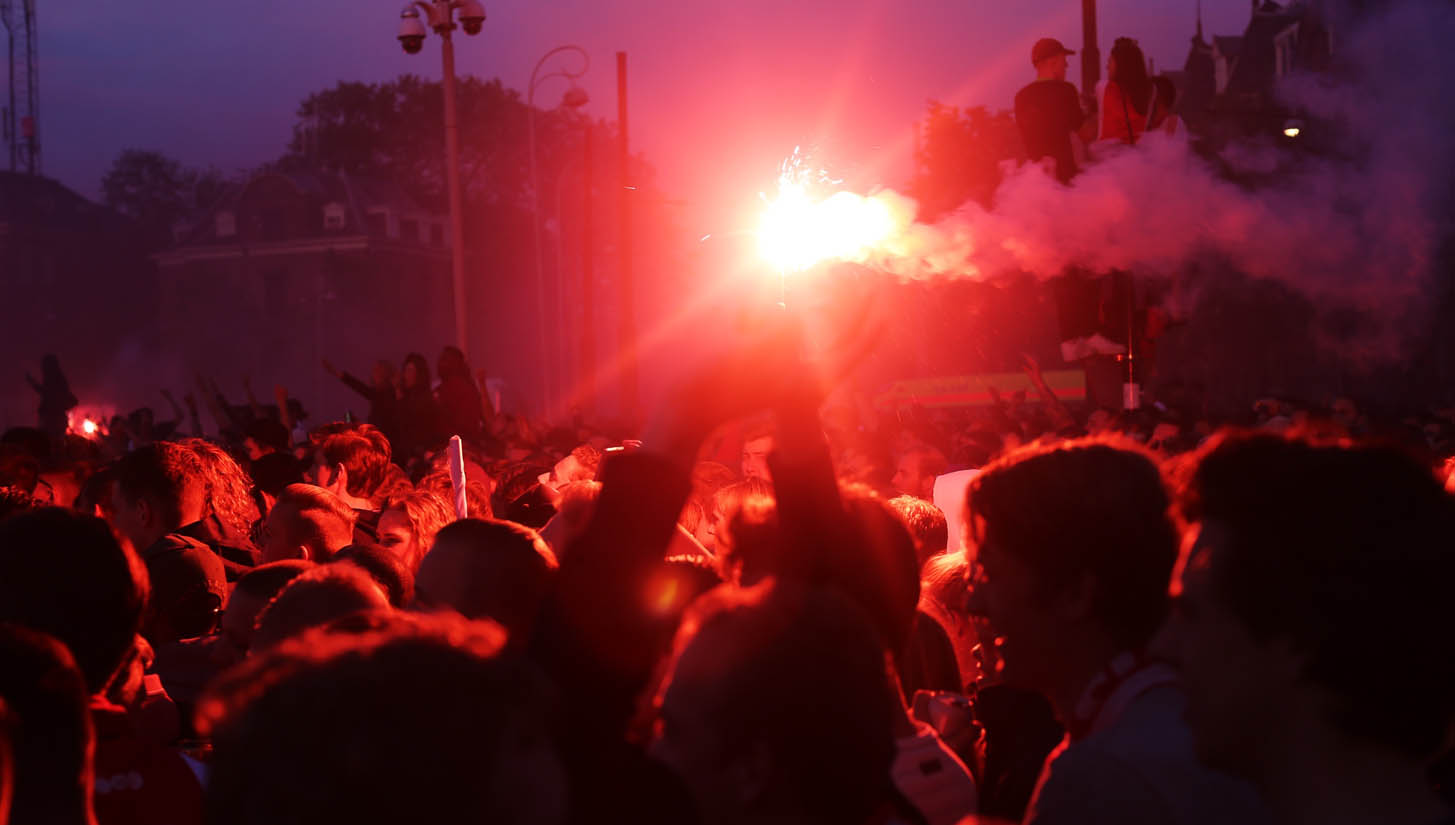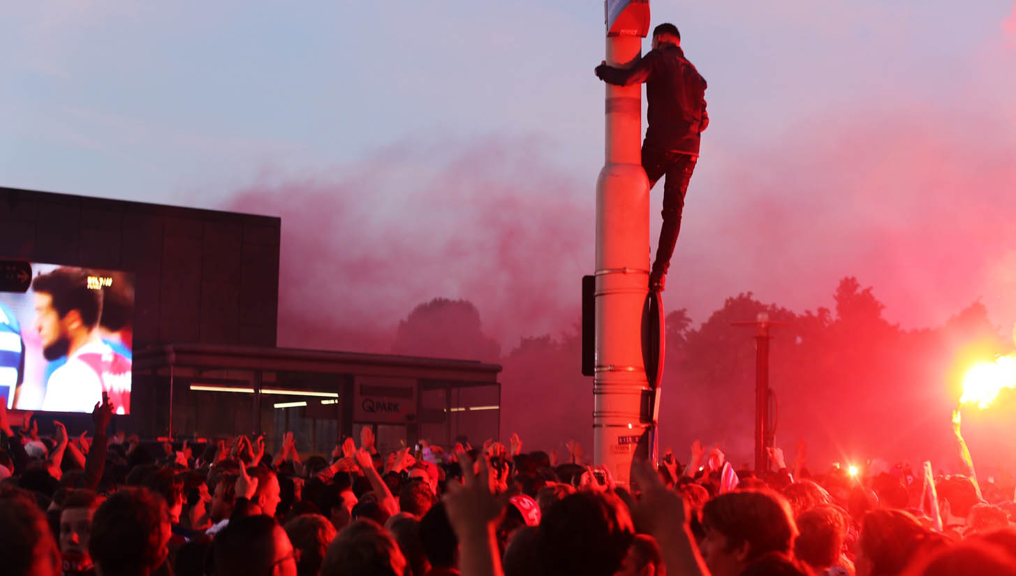 Bring flairs, climb lampposts, scale storefronts and of course, drape yourself in the colours of your club. The pre-requisite that comes with the final of any major European tournament though more pure then just taking to the streets, the sheer volume of support that the Ajax fans have for the club is infectious and striking.