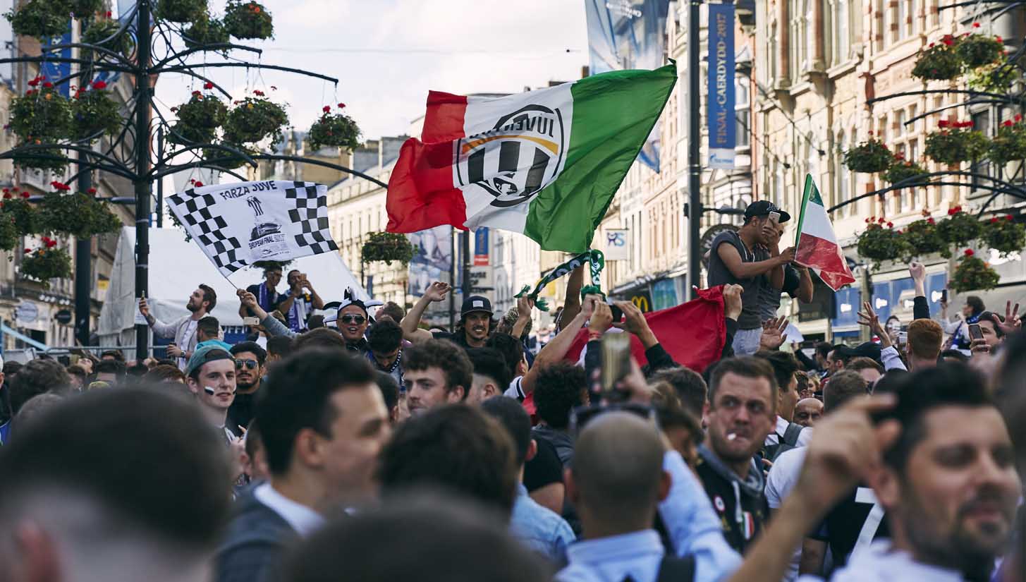As far as European Final venues go, Cardiff takes some beating for location. Smack bang in the middle of the city centre with pubs and bars man-marking the stadium from every angle, it's a recipe for atmosphere and the city's tourists for the weekend duly cooked up a party of festival flavour. Italians, Spanish and locals flooded the streets from Cardiff Bay to Cardiff Castle creating a celebratory atmosphere that all sides can be proud of. No bother, no goading, no aggression. Just passion, respect and the aim to have a damn good time in the Welsh sun.