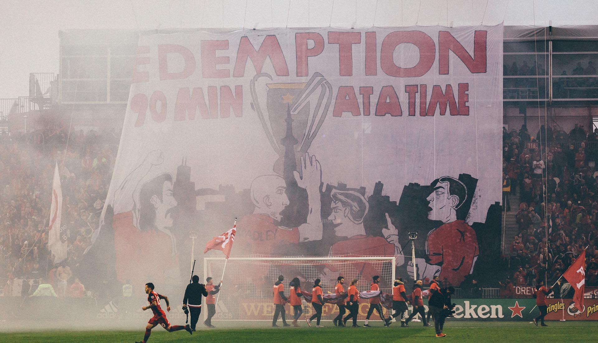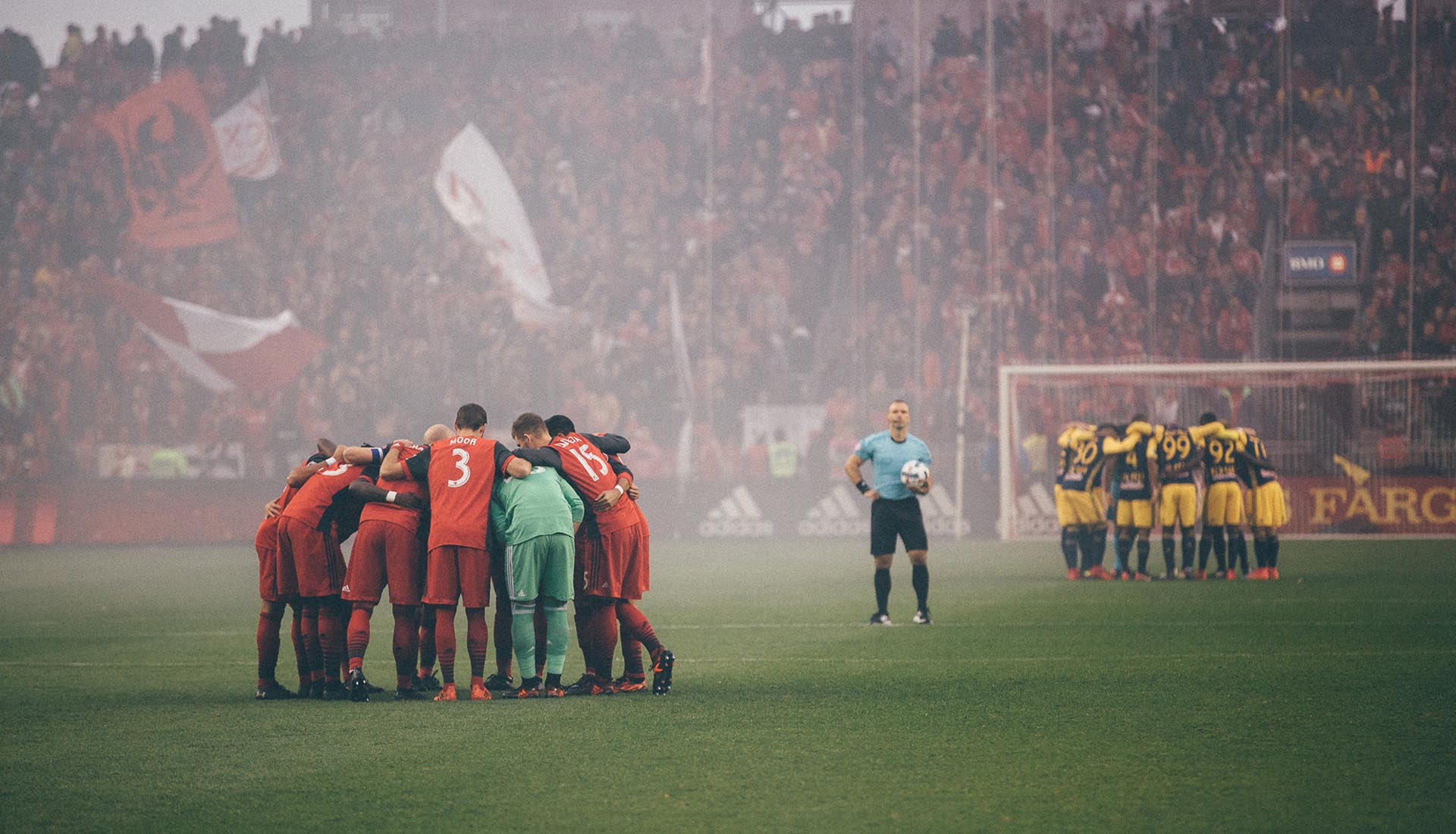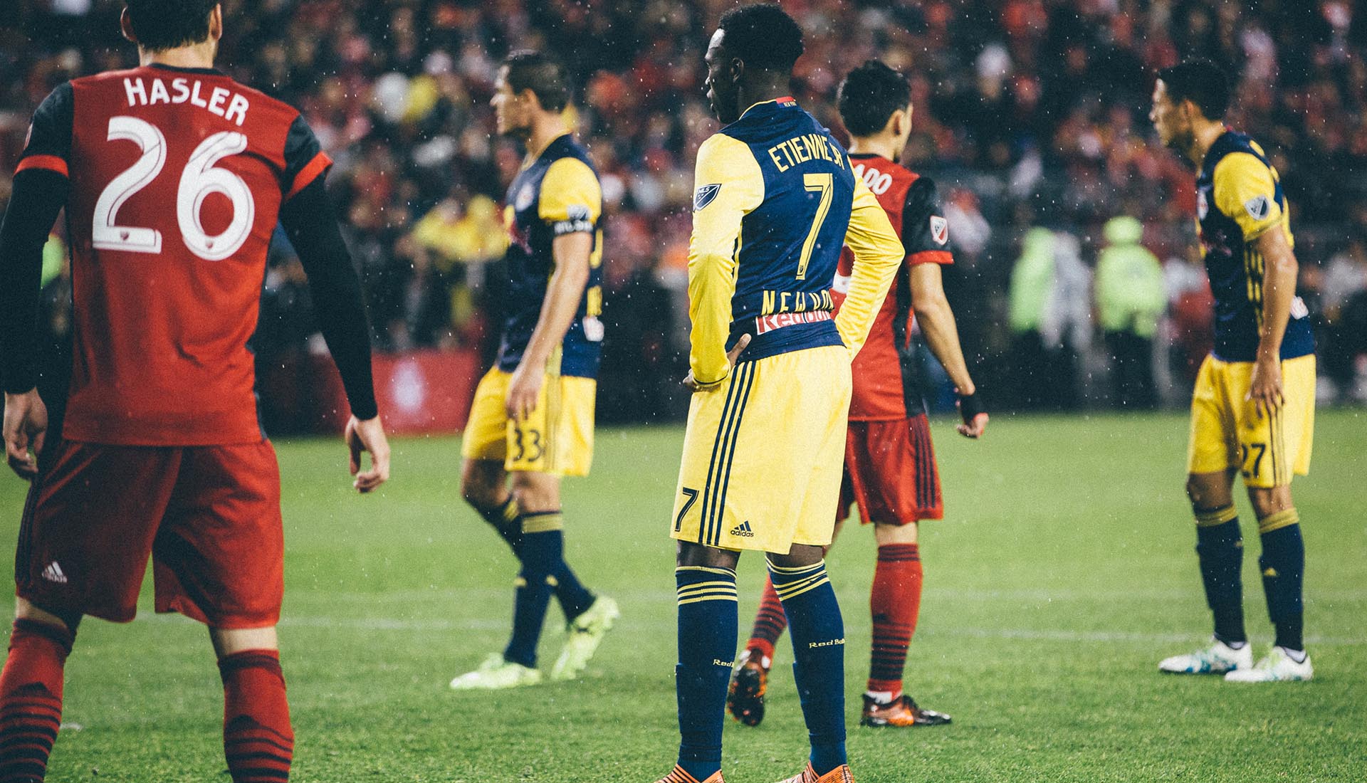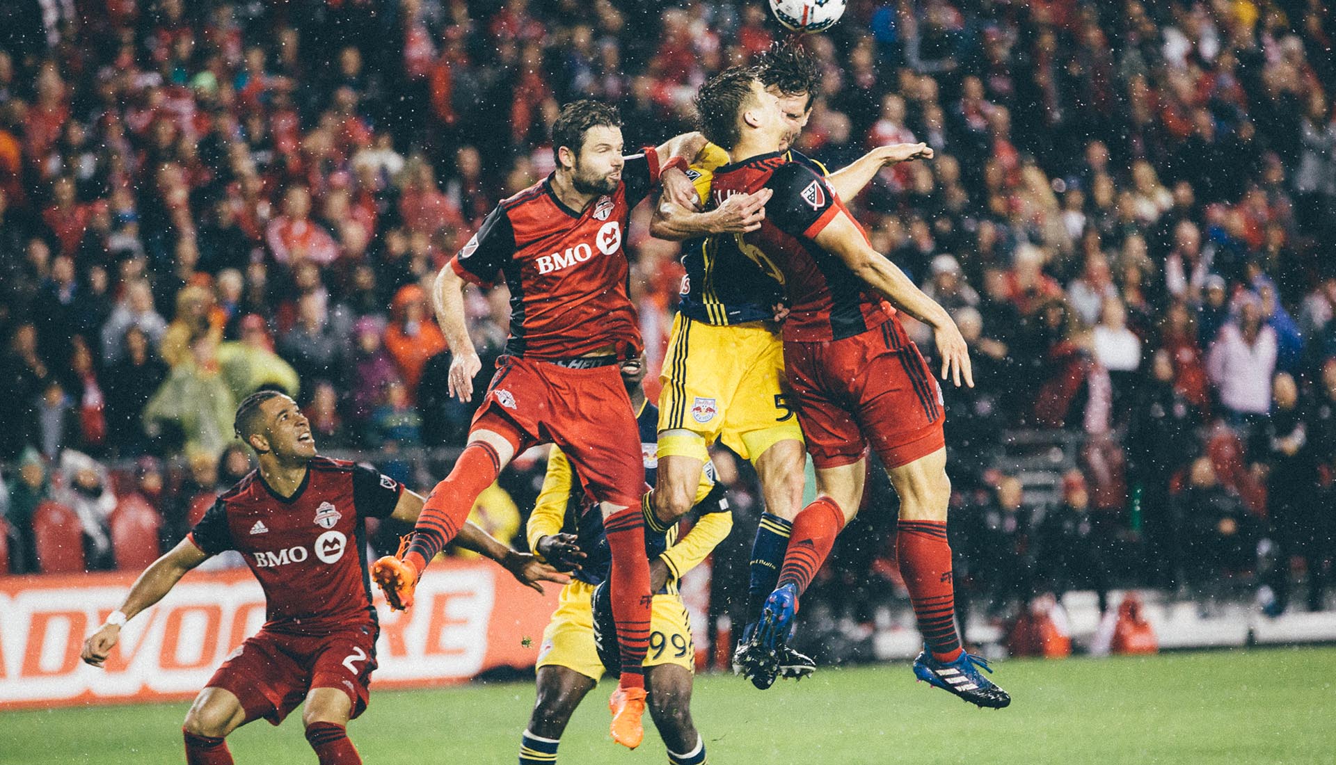 Sitting somewhere between Mad Max and Rocky IV, this game was a spectacle on so many levels. A semi-final of the Eastern Conference Championship, the first leg saw Toronto beat New York Red Bulls on the road taking a 2-1 aggregate score into this game. What's more, with away goals giving Toronto that hefty advantage, the Red Bulls had a pretty big mountain to climb. While the Toronto fans lined the streets providing nothing but serious scenes, it was the Red Bulls players that began to win the on-pitch battle. Heated exchanges between players littered this game and after a bust up in the tunnel at half-time, Toronto's Jozy Altidore and the Red Bulls' Sacha Kljestan were sent off at the break.