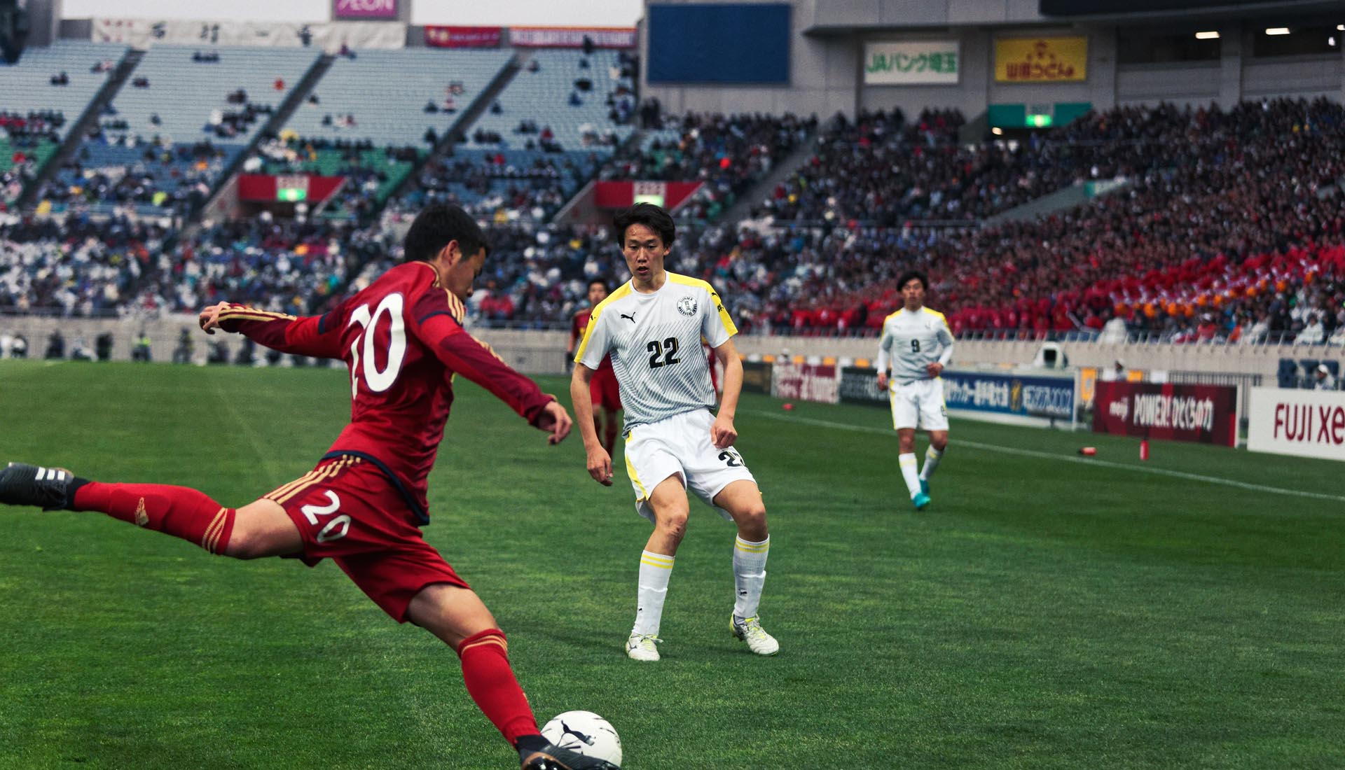 At this stage in the tournament over 4,000 entries have been whittled down to just four. We’re standing on the sidelines as we document the two semi-final match-ups and, just days later, the final. The setting is the spacecraft structure of the ‘Saitama Stadium 2002’ - a huge theatre built for the 2002 Korea and Japan FIFA World Cup. It’s the first sign of this being no ordinary high school showpiece. Not only do the best teams in the lands play here for a special series of annual fixtures but they pack it out with 40,000 people upwards.