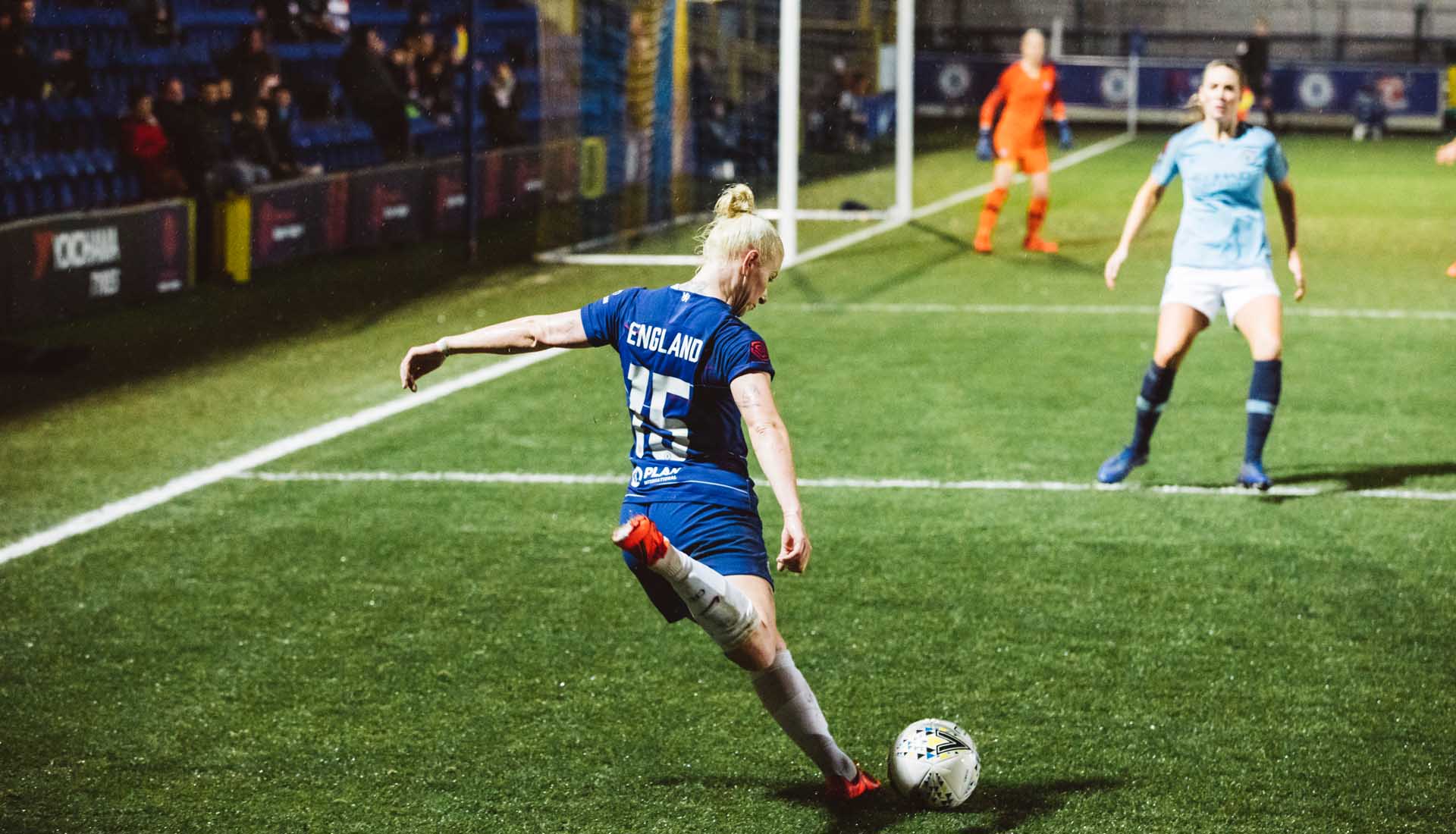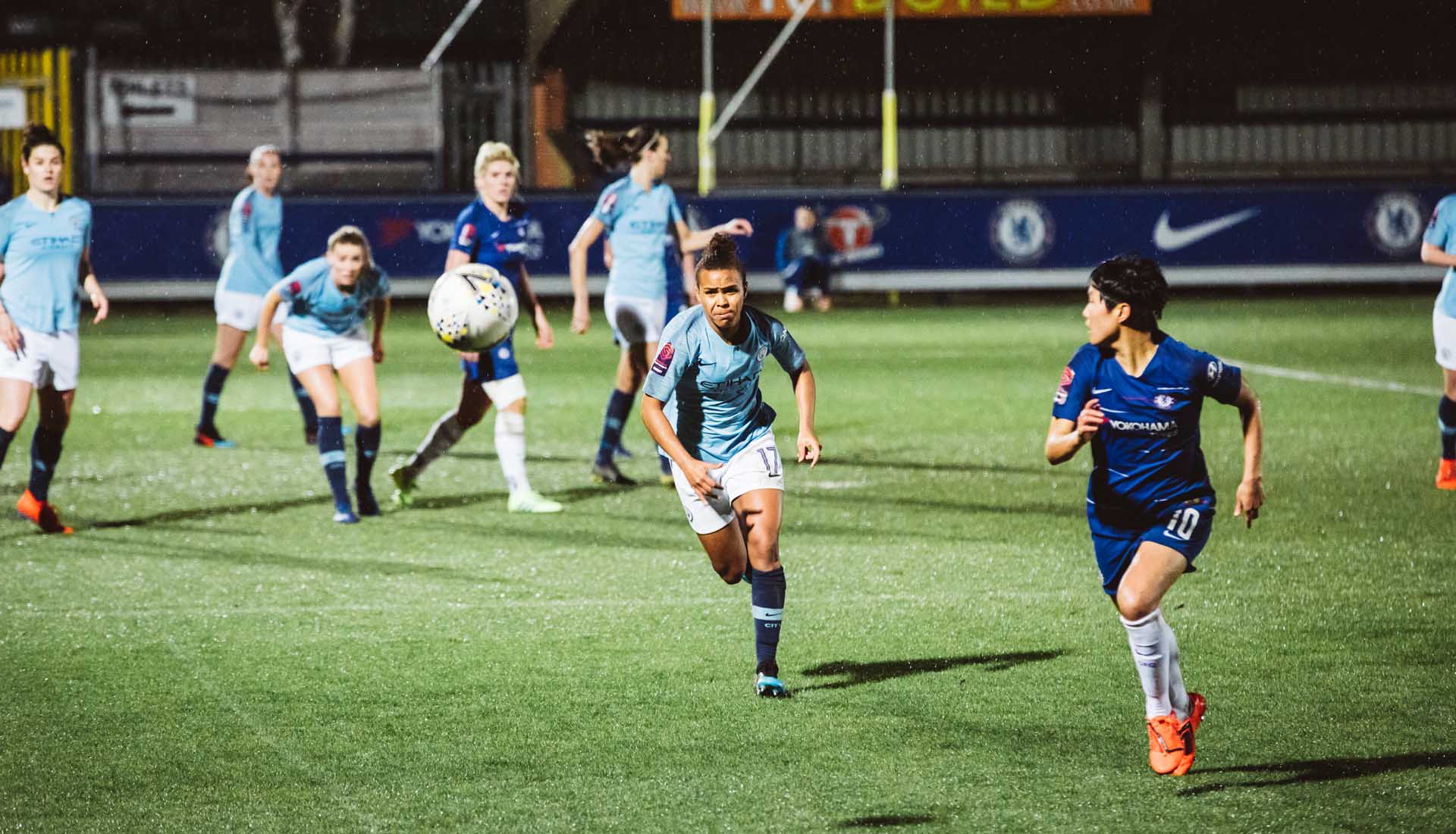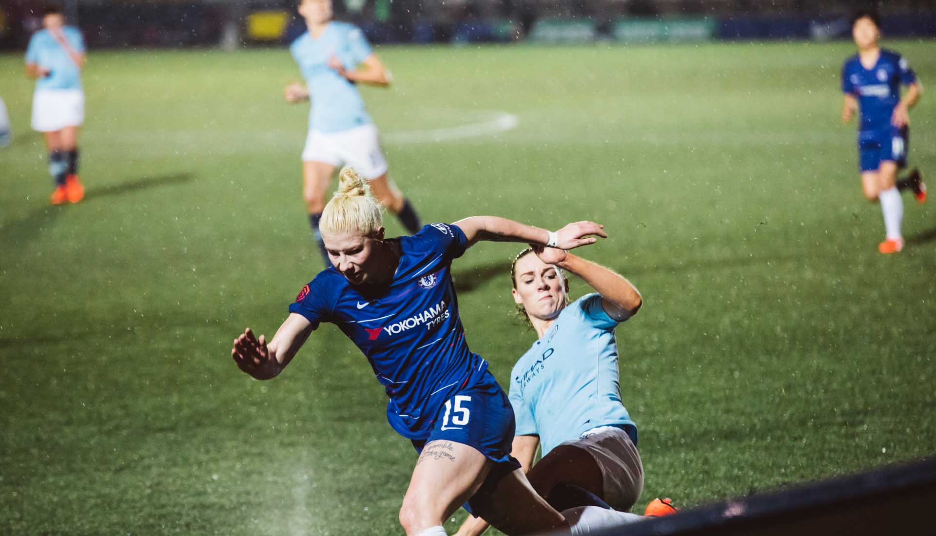 Playing the game in the lashing rain under the floodlights in a winner takes all match: that’s what it’s all about. For the latest stop in our ‘Framed’ Series, we headed to Kingsmeadow Stadium, Kingston upon Thames, for the Women's League Cup semi-final that saw Chelsea hosting Manchester City.