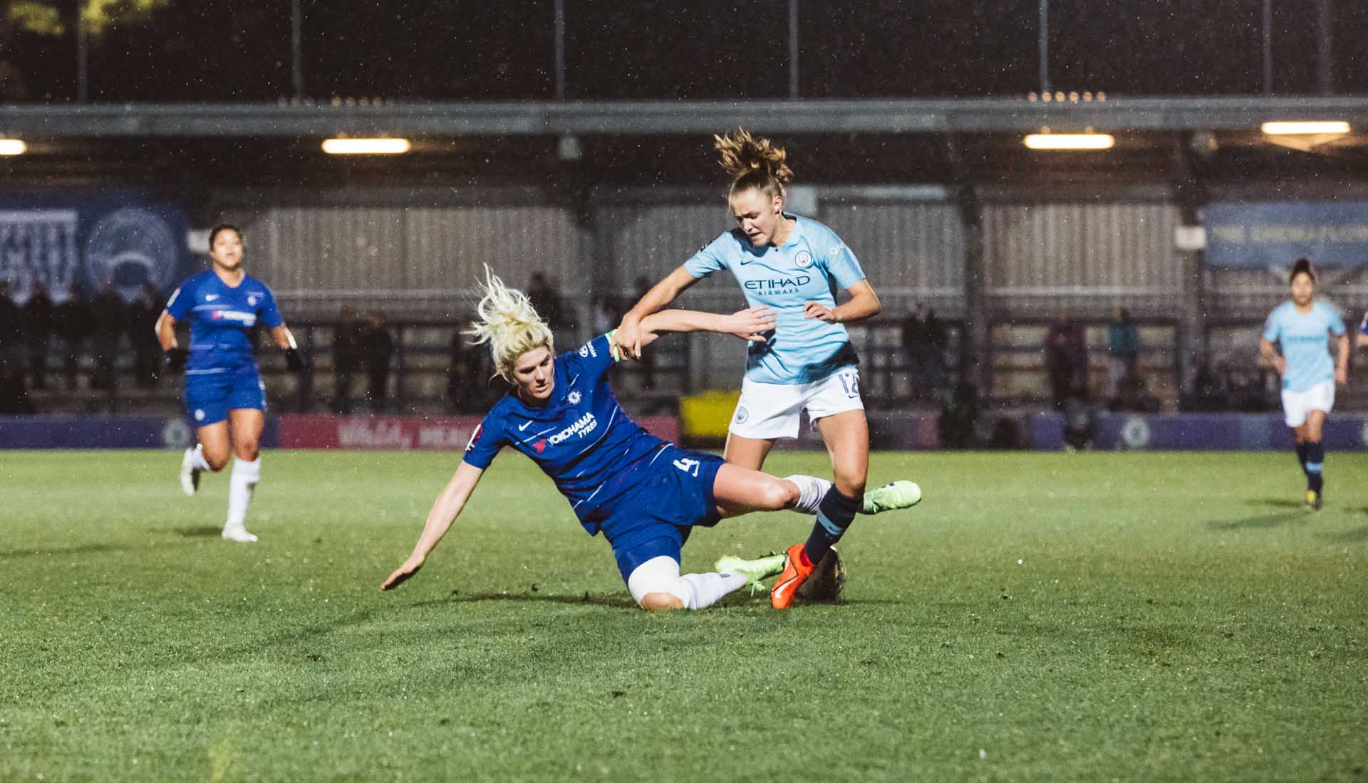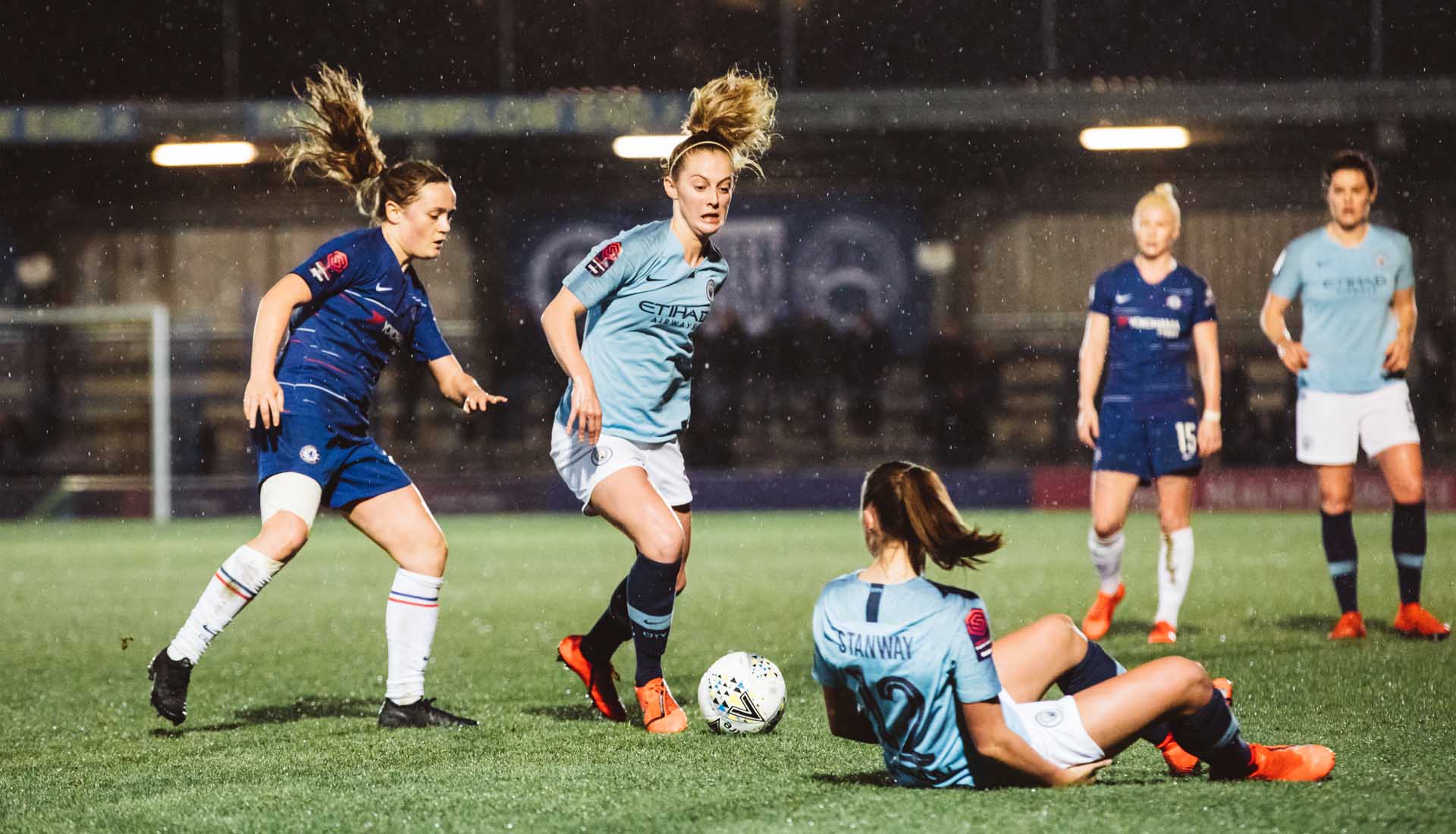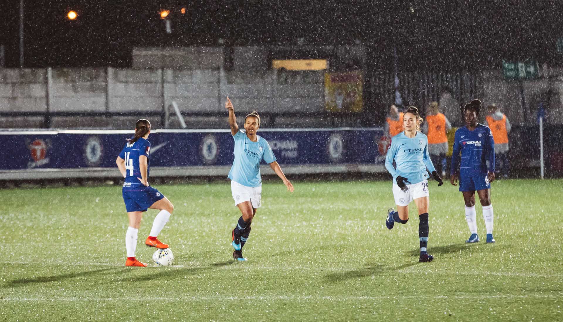 Playing the game in the lashing rain under the floodlights in a winner takes all match: that’s what it’s all about. For the latest stop in our ‘Framed’ Series, we headed to Kingsmeadow Stadium, Kingston upon Thames, for the Women's League Cup semi-final that saw Chelsea hosting Manchester City.