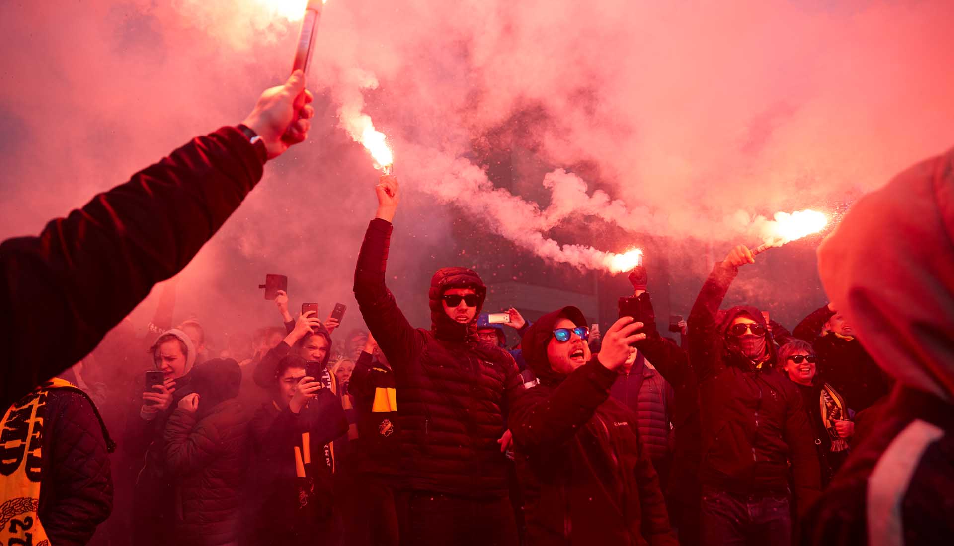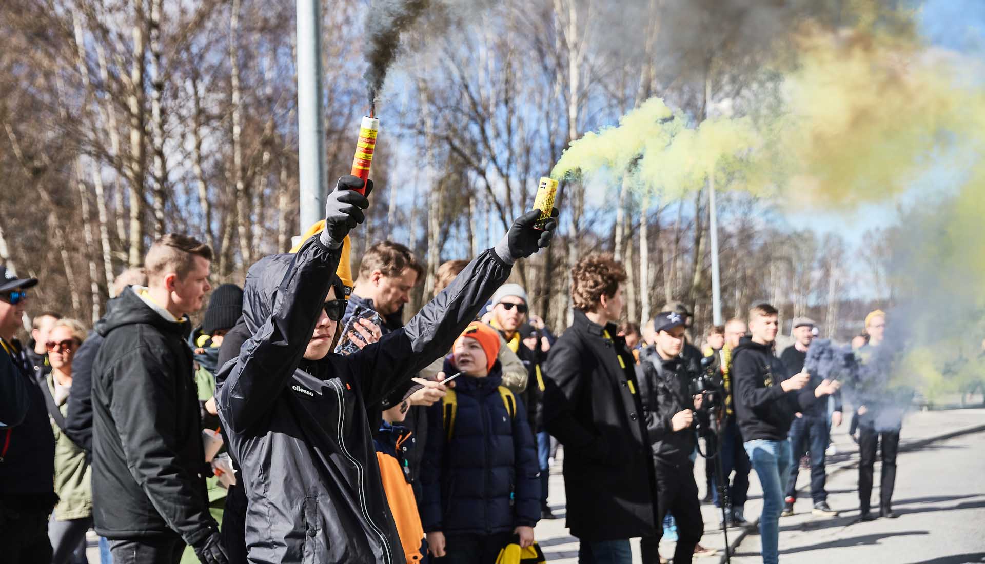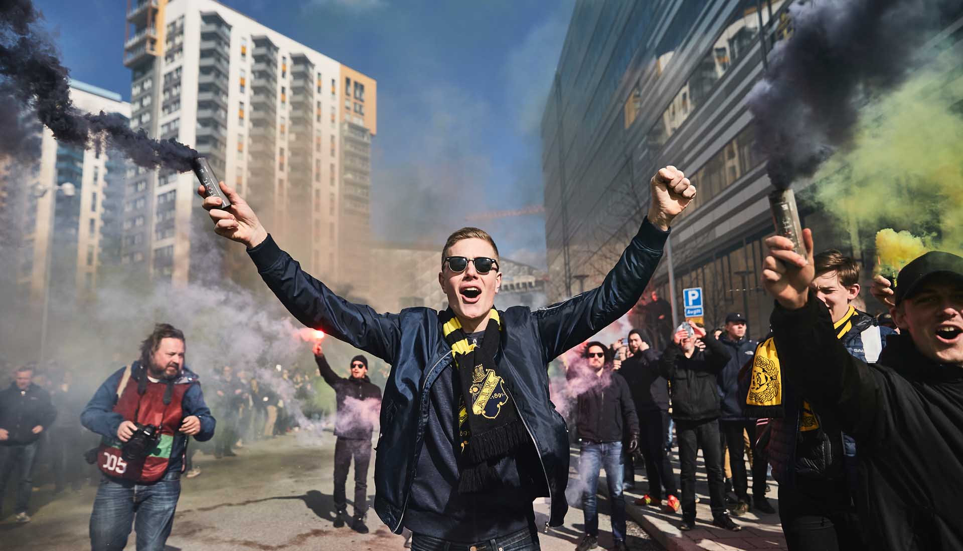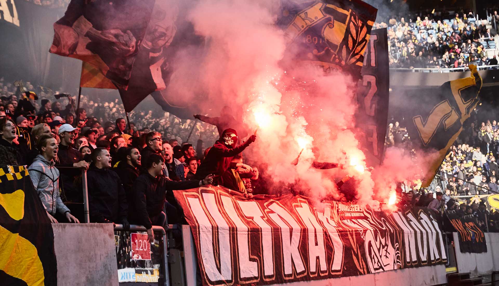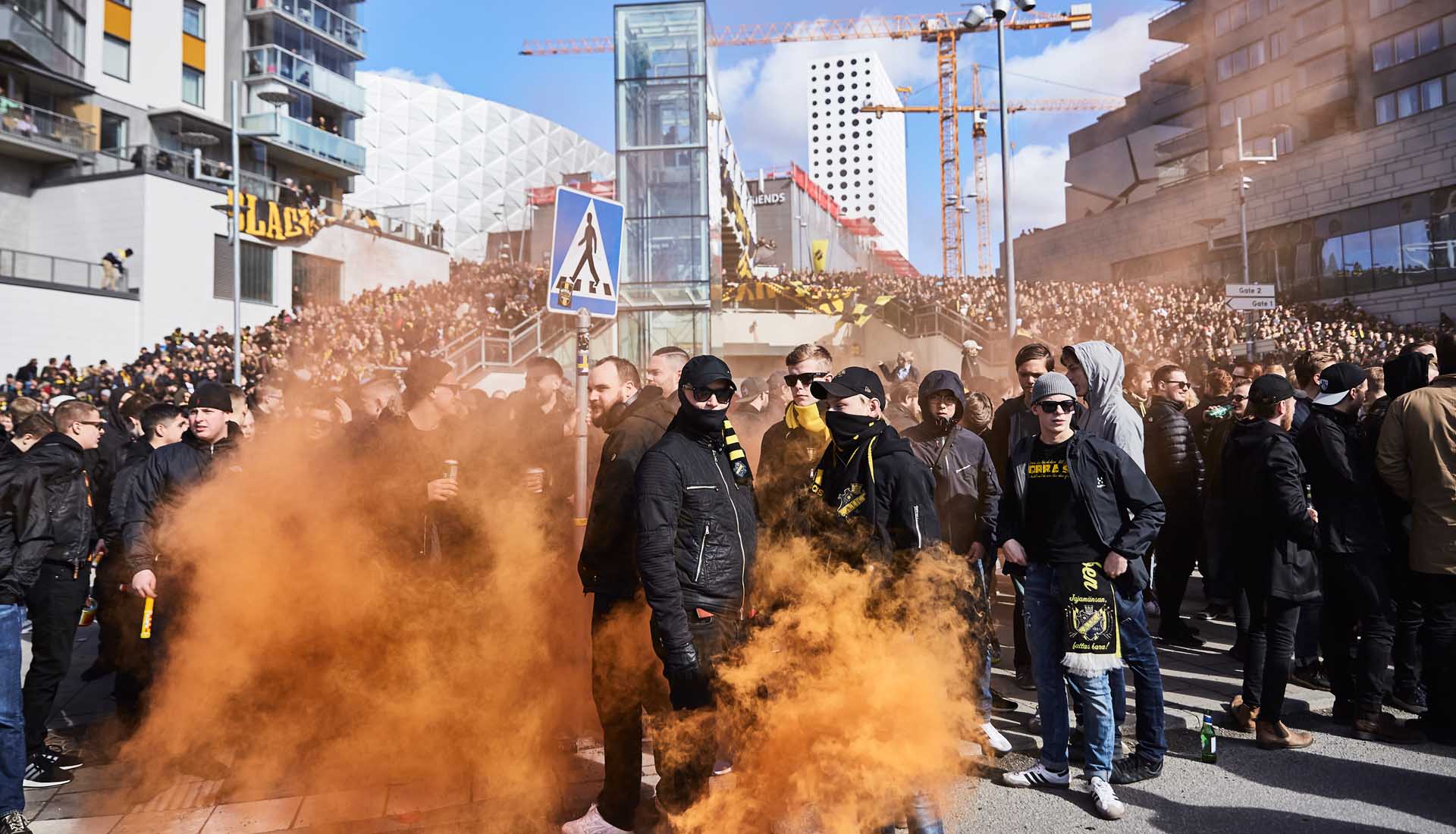 Seriously, if football in Stockholm is anything to go by then we're fully convinced that the whole of Sweden takes flares to every semi-significant family occasion. If we attended a kid's third birthday party we'd absolutely expect all of the parents, and some of the older kids, to be stood in a circle all holding flares as the kid unwraps its present, which would probably be a box of flares. Christmas, New Years, Nan's funeral = Flares. Anyway, we've gone off track. After following AIK to their final game of the 18/19 season where they clinched the title in dramatic scenes, we stuck this one in our calendar as soon as the fixtures came out, with the added bonus of seeing the new Nike 19/20 home kit on pitch for the first time.