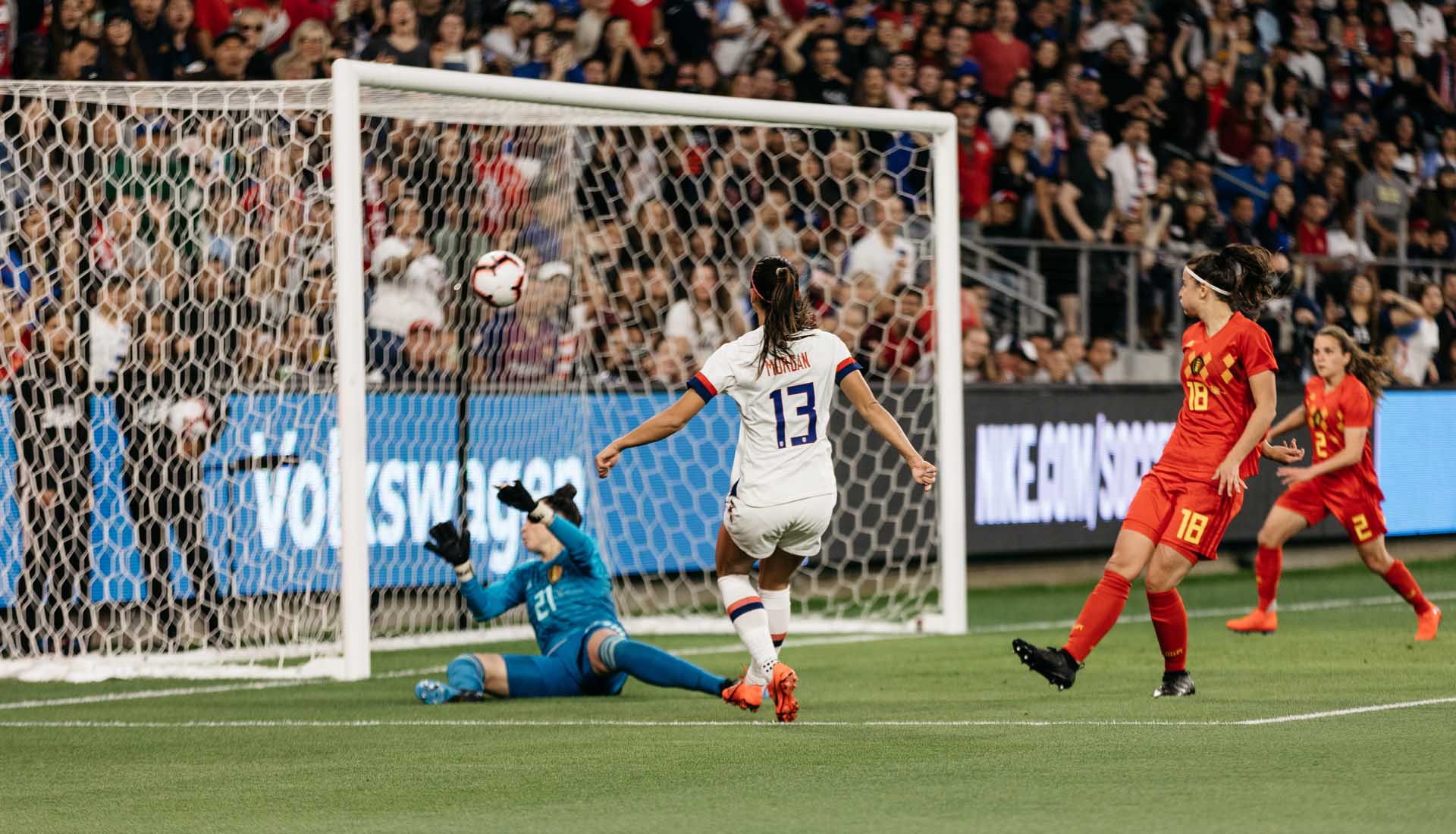 That whirlwind start set the tone for the match, with Belgium seemingly unable to defend against aerial attacks. Five of the eventual six goals were headers, with the only goal from the deck coming from the foot of Morgan, assisted wonderfully by Lloyd. The home fans were thrilled to see their returning daughter finding the net.