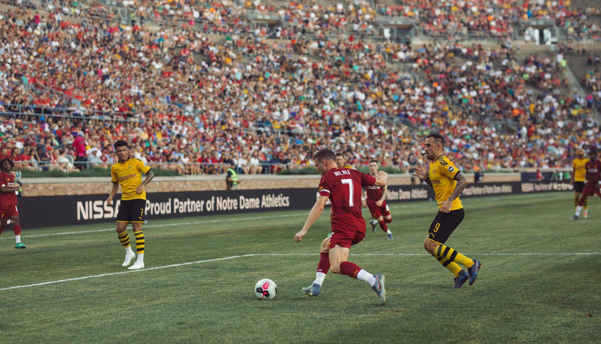 Notre Dame Stadium in Indiana played host to its first-ever soccer match, as Champions League winners Liverpool faced Borussia Dortmund for a preseason match in the blistering heat of America’s midwest region. With both teams famed for their fans though, it was a half full stadium that took in the encounter.
