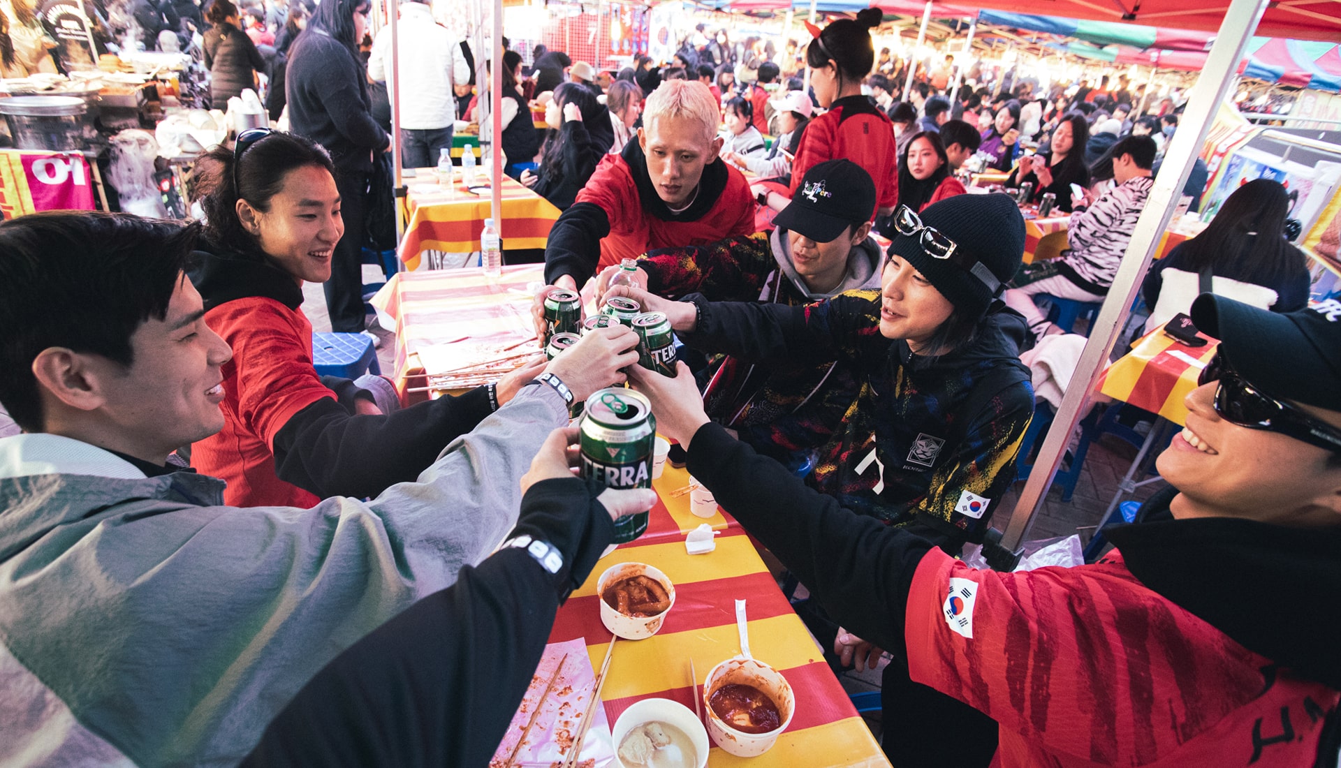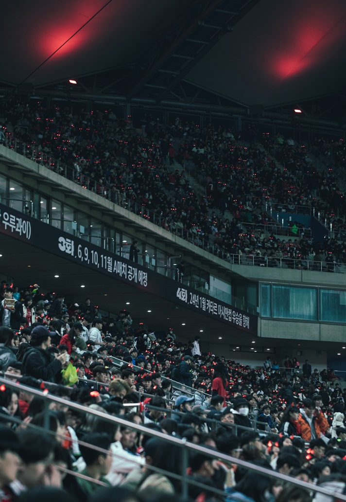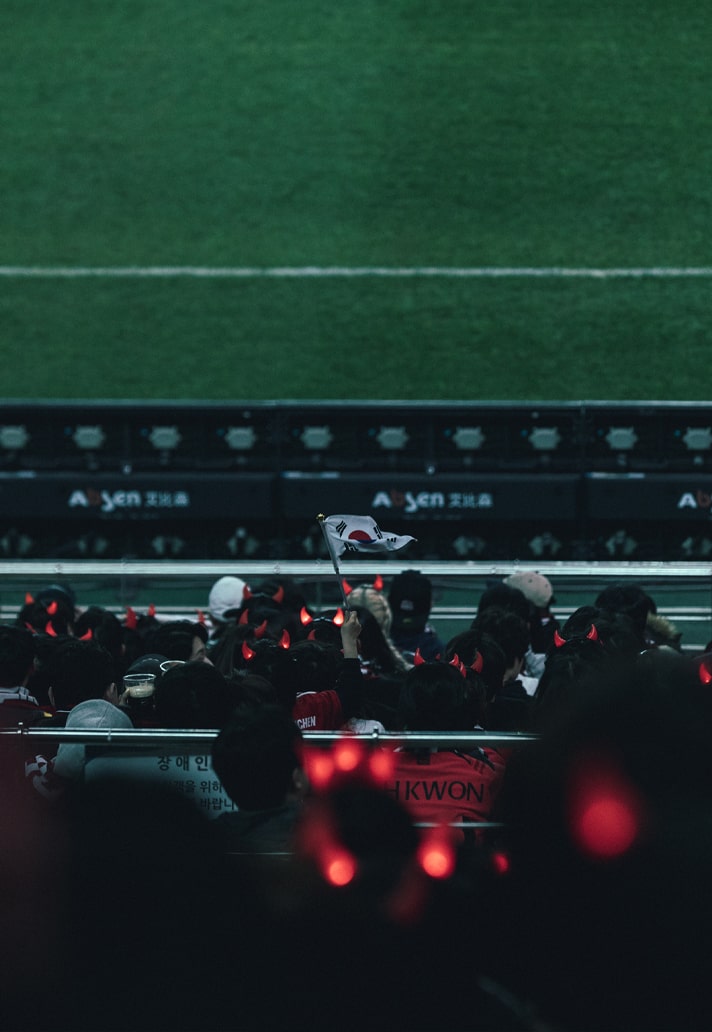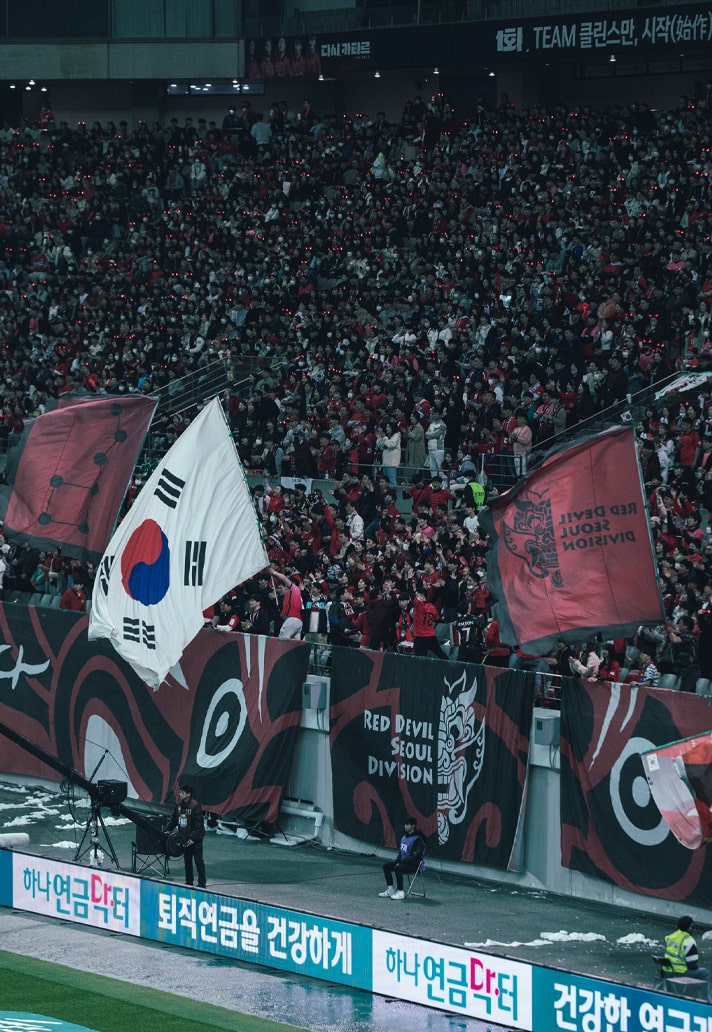 While in the U.K. it’s customary to head down to the pub for a prematch pint, South Korea has its own unique culture, centred around street food vendors (포장마차 : Pocha). Known as a ‘Pocha’, these tent-style restaurants on the street act as a communal place for prematch festivities, selling various Korean dishes and drinks, and they’re in abundance in city centres or on small streets at night. And this is where Korean fans often go when they feel like drinking and eating in a casual atmosphere with friends, particularly on a match day, where numerous Pochas are set up in front of the stadium. And it’s not just a ritual for prematch, with many fans flocking back after the final whistle.