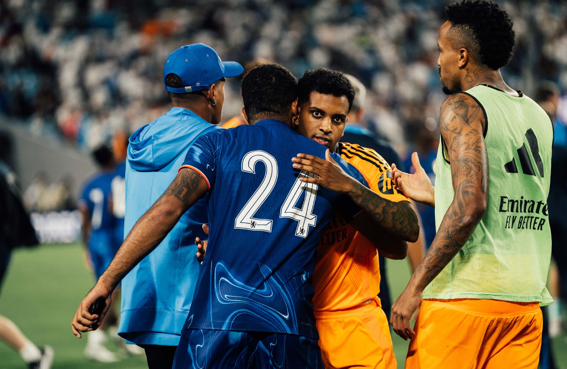 Real Madrid's XI included two former Blues in Thibaut Courtois and Antonio Rudiger, with another, double-winning Carlo Ancelotti, as the head coach. Chelsea were in their wavy new home shirt, while Real Madrid opted for their away shirt, which featured a special name and number set, which was designed by Puerto Rican born, Chicago-based artist JC Rivera. The initiative is part of the adidas ‘artist pack’ collection and raises the profile of social and sporting projects involving vulnerable groups.