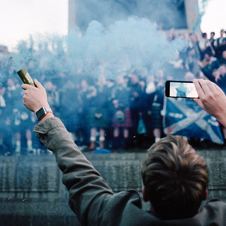 Choose tartan. Choose Trafalgar. Choose fans. Choose a sky filling flare, choose beverages, beer, whisky and wine. Choose your tube ticket, your destination, and your spot for the night. Choose your pink kit. Choose those adidas Sambas. Choose the first round and scarf to match. Choose the soggy burger, the sizzle of the onions and the ketchup that spills all over the floor. Choose full voice. Choose people. Choose unquestioned support. Choose Football.