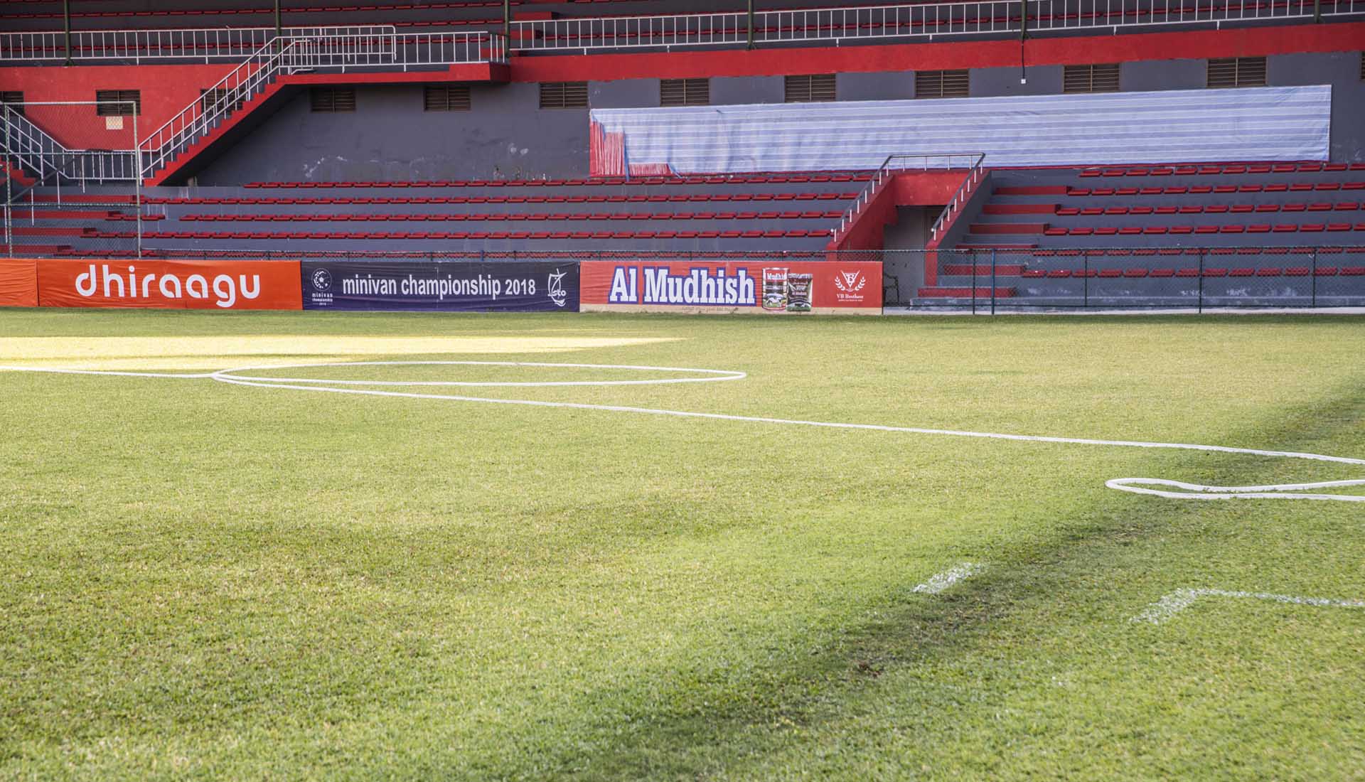 The National Stadium of the Maldives hosts international fixtures as well as every Dhivehi Premier League game in the country's top flight. That's a league of ten teams all playing each other twice over the course of the season. If you were thinking that a stadium in the Maldives would be surrounded by palm trees, beaches and panoramic sea views then you're going to be disappointed. The Rasmee Dhandu Stadium packs an urban vibe, overlooked by high rise apartments and defined by its makeshift upgrades and improvements. It's all throwback with a lick of faded paint, and that's what makes it so enticing.
