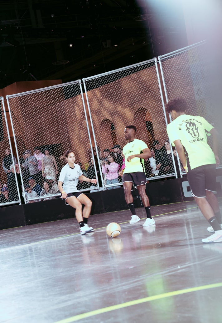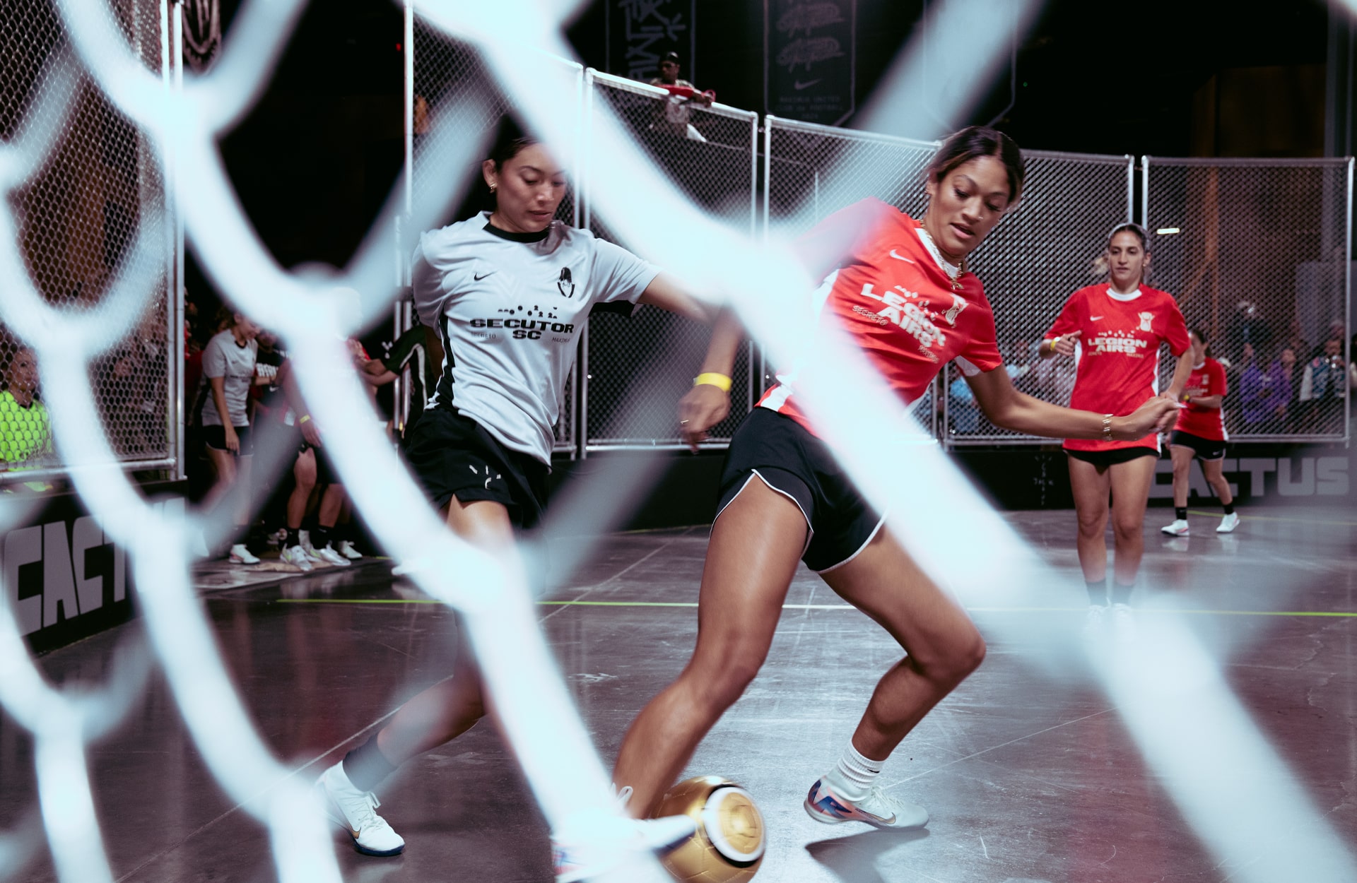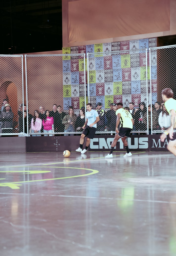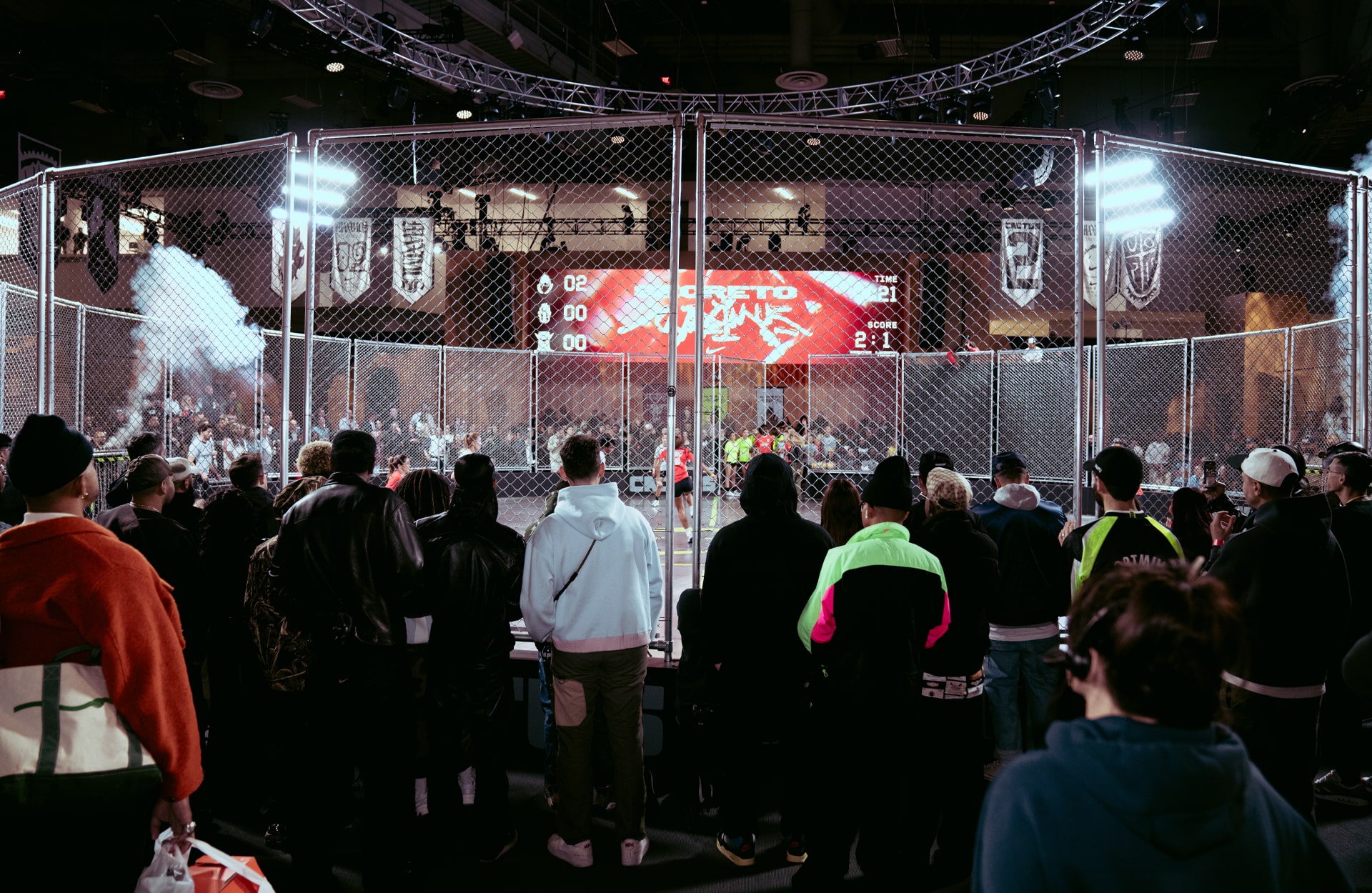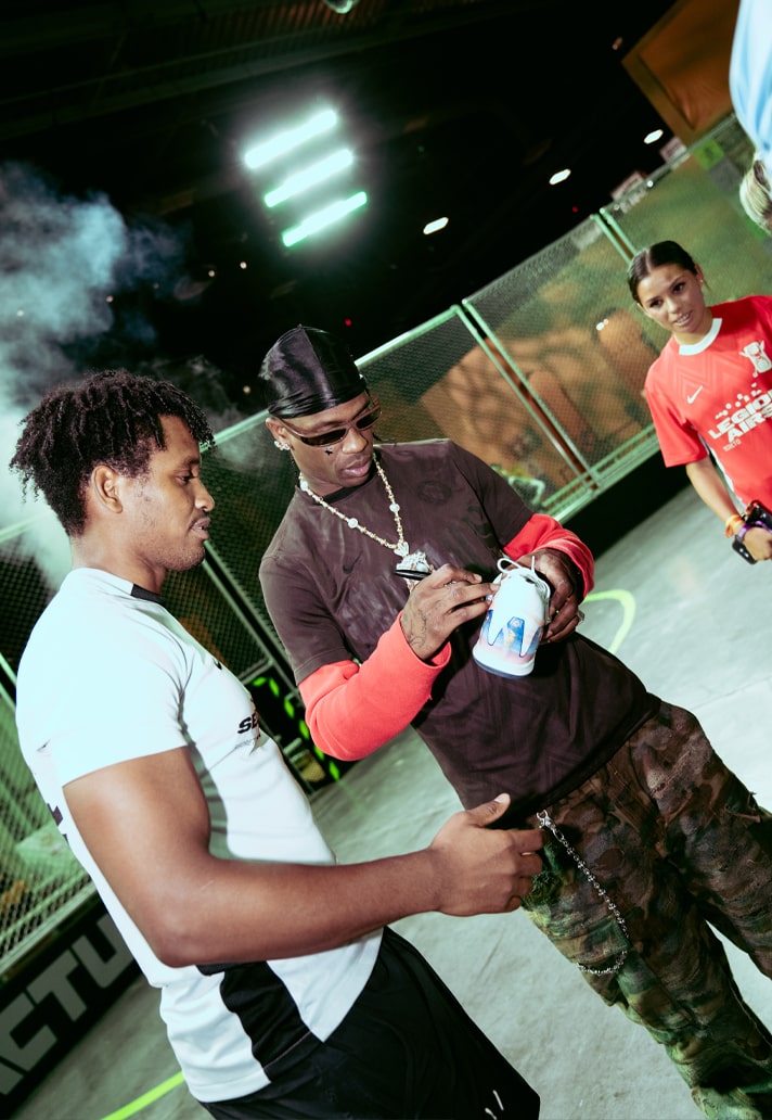 Designed to celebrate the release of the Nike Zoom Field Jaxx, the Cactus Colosseum space featured a curated display of Scott’s past collaborations, a soccer kit customisation studio, and street soccer challenges. But the real attention was on the caged court, and rightly so.