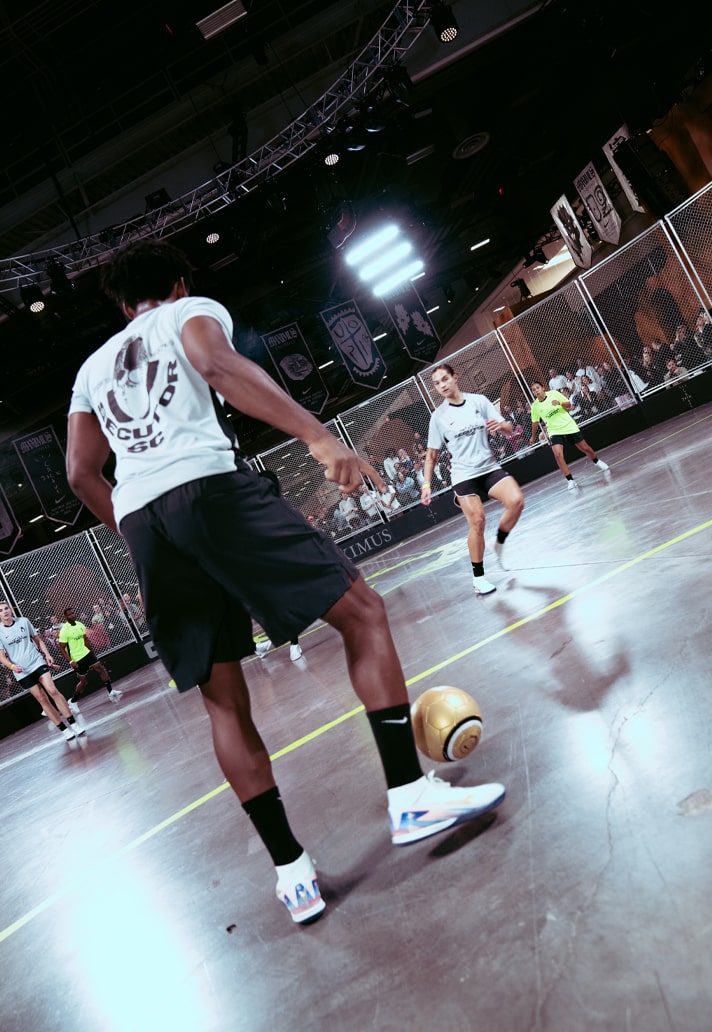 Repackaged it may have been, but there’s no pulling the wool over our eyes: this was the Secret Tournament reborn. Cages, small-sided games, Edgar Davids and Luis Figo linking up in the Scorpius FC side, and T90-vibes aplenty. Part of that came from the familiar circled aesthetics of the match ball, some from the kit designs, but most came from Davids himself, who was sporting the imminent rerelease of the Nike Air Zoom T90 III, which was confirmed to be returning earlier this year.
