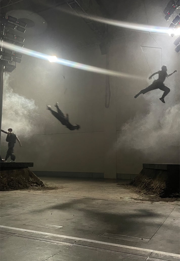 With scenography crafted alongside Tom Schneider, the project hacked the raw energy of the stadium, reprogramming floodlights into cinematic beacons that illuminated a battleground where football’s tribal intensity met the grandeur of ancient mythology. Movement, sound, and light collided in a hypnotic display—like a football chant made tangible, reverberating through the space in electric waves.