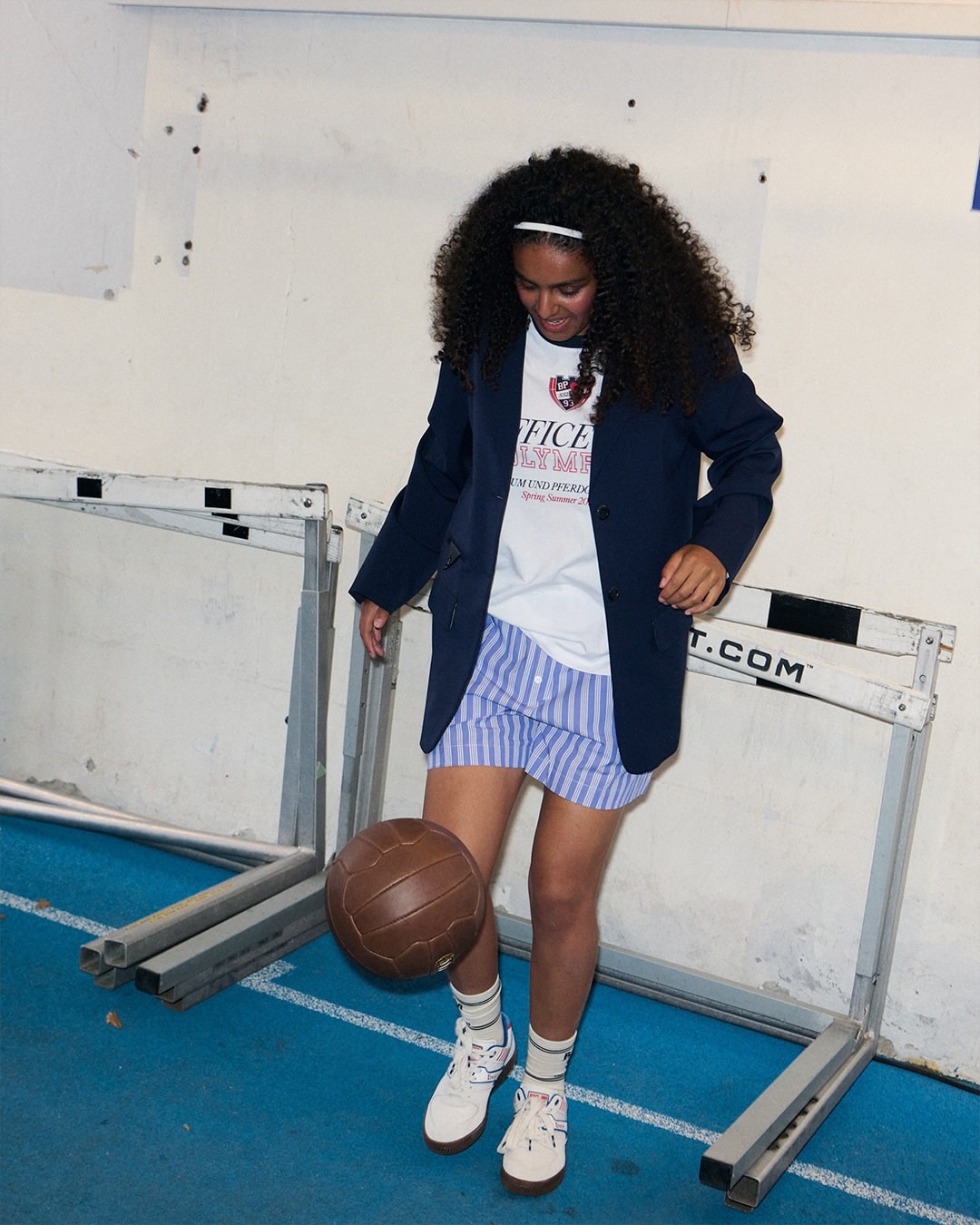Now, though, B.93 is experiencing a renaissance. As well as a steady place in Denmark’s second tier, the club has earned a reputation as one of Europe’s most exciting, creative, and inclusive football teams. There have been collaborations with local artists and brands, a community focus that champions homegrown players, and off-pitch directives which include partnerships with local charities combating gambling addictions. At Copenhagen Fashion Week last month, B.93’s home stadium played host to Baum und Pferdgarten’s SS25 show and the local womenswear label also designed the women’s team jerseys. The club itself also launched a limited edition collaboration with Irish knitwear label Pellador.