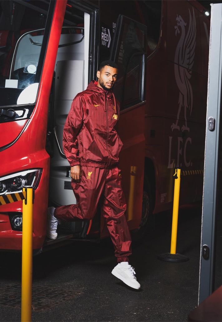 It’s a sentiment shared by Quansah when his time comes for a chill. “They're good for the fans to show that they can get involved with what the players are wearing as well," he said, still in the zip-up hoody and track pant combo from the collection, as he sat forward, elbows on knees. "When they see pictures of us and they can replicate their idols, I think that's always good that they have that connection to the players.” Having seen them being sported by the team after the victory over United, you can only imagine that the collections’ appeal went up.