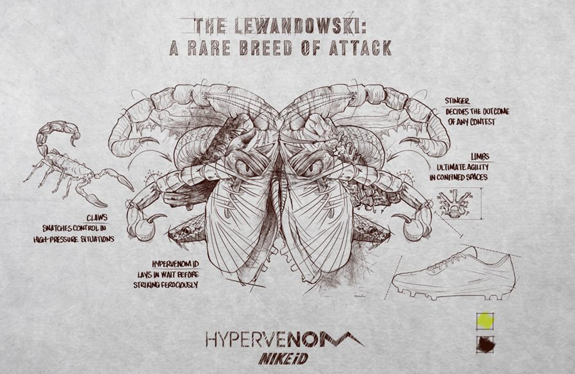 But beyond the tech and the aesthetics, the Hypervenom’s iconic status was undoubtedly enhanced by Neymar. For years Cristiano Ronaldo had dominated Nike’s football output, but now a new dynamic boot existed for a completely different type of player, and Neymar defined that player perfectly. He launched the boot at a headline event in Rio de Janeiro and the launch of the silo coincided with his move to Barcelona and his poster boy status ahead of Brazil hosting the 2014 World Cup.