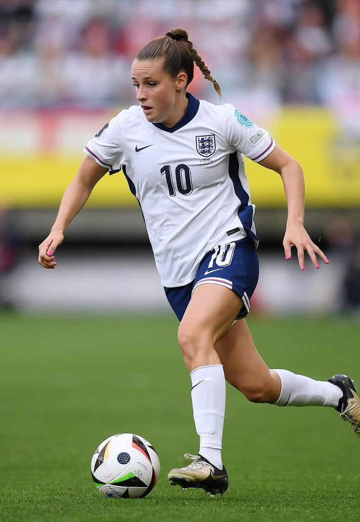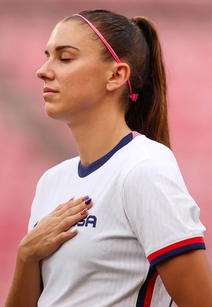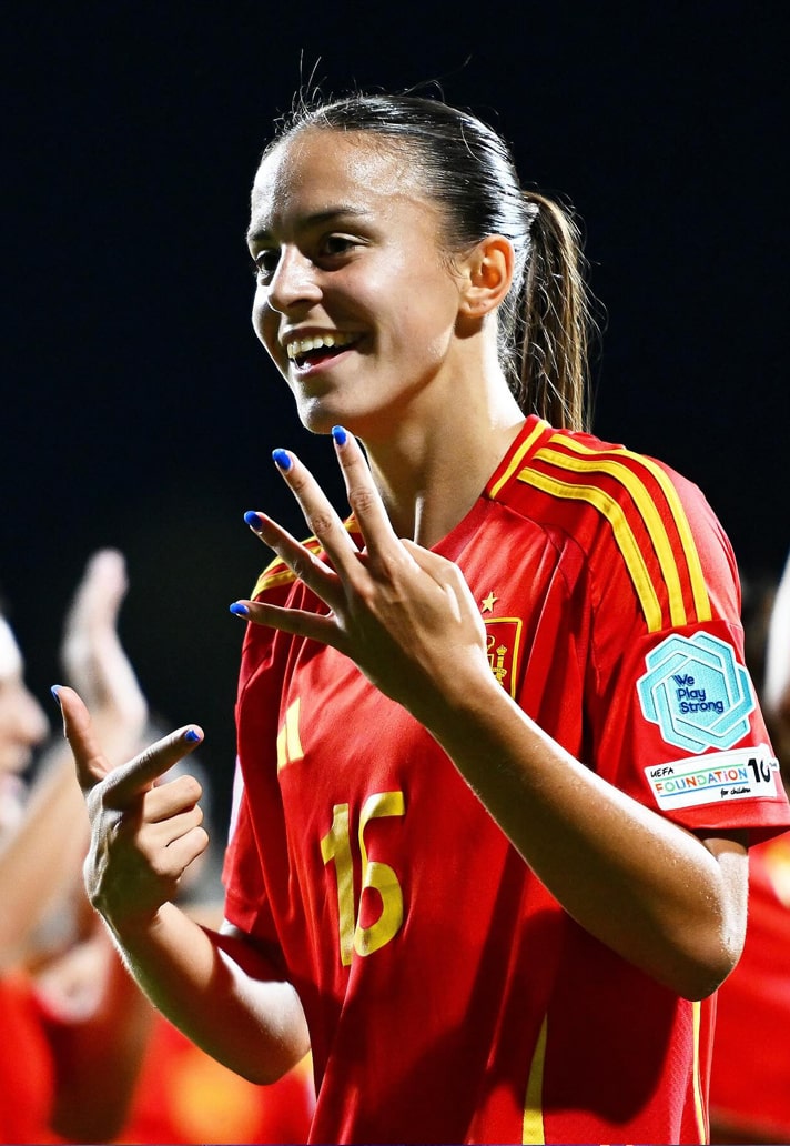 Take Denmark and Real Madrid striker Signe Bruun — whimsical short red gels bringing cognitive dissonance to those in the way of her goal massacres. Or Alisha Lehmann, Switzerland and Juventus’ poster girl for beauty-meets-ball, whose constant nail switch-ups – long, short, neon, nude, she’s done it all – mirrors her playful style of play.Then there’s England and Arsenal’s Alessia Russo, whose chrome gels have become so iconic they earned their own shade, courtesy of an Aussie nail tech during the 2023 World Cup.