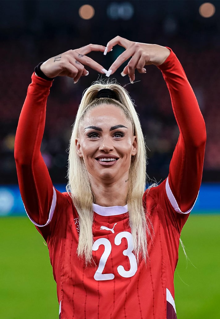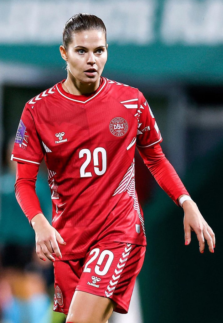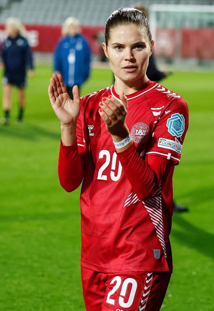 Cornelia Kramer, Denmark and Bayer Leverkusen striker who, at the age of 22, will appear in her first EUROs, shows up for the interview with a set of French acrylics “that needs to be redone”. She is having quite the year, having just been named Bayer Leverkusen player of the season and finishing sixth in the league top scorer rankings. “Manicured nails is a bit like getting ready in the morning. I feel more refreshed and presentable, and I feel like I exude that I am ready for the day. You know, ‘Look good, feel good, play good’.”