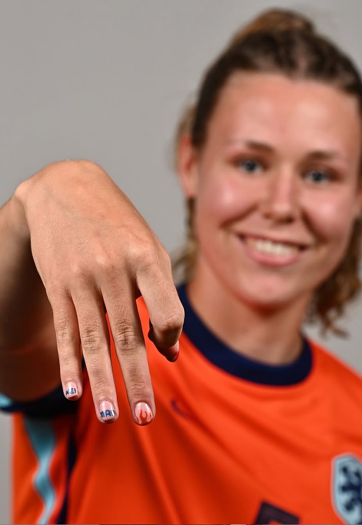 And the EUROs build-up? Already a keratin canvas the size of Switzerland. Michelle Agyemang, Jess Carter and Ella Toone all flashed different shades of polish for the Lionesses’ M&S x England campaign. Meanwhile, Netherlands' Dominique Janssen turned up to camp with a fresh set dipped in — what else — patriotic oranje.