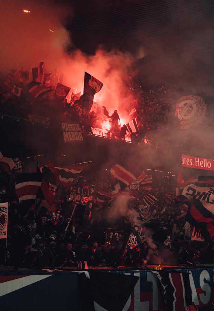 Now when it comes to match day, there is nothing quite like it. At the Vélodrome, Marseille’s ultras turn concrete into wildfire. Flares, smoke, banners, flags. And a wall of sound that seems to rattle the city itself. The spectacle continues throughout the stadium and onto the streets. Graffiti on the wall, bars bouncing with tension, chants filling the air. Anyone who dares to wear the wrong colours on the wrong street is sure to know about it. It’s the epitome of passion, pride, and loyalty.