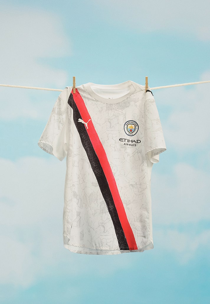 And that brings us on nicely to Colm Dillane. Under his KidSuper label, the designer turned football kits into living art. His collaborations with PUMA aren’t just designs—they’re expressive, painterly statements. The Club World Cup capsule (2025) dropped in June was a kaleidoscopic fusion of football, fashion and pure imagination. Managing aesthetics across major clubs—from Manchester City to Palmeiras, Dortmund to Al Hilal—Dillane layered watercolour graphics, hand-drawn motifs, and club heritage into a vibrant, bold narrative on pitch and off.