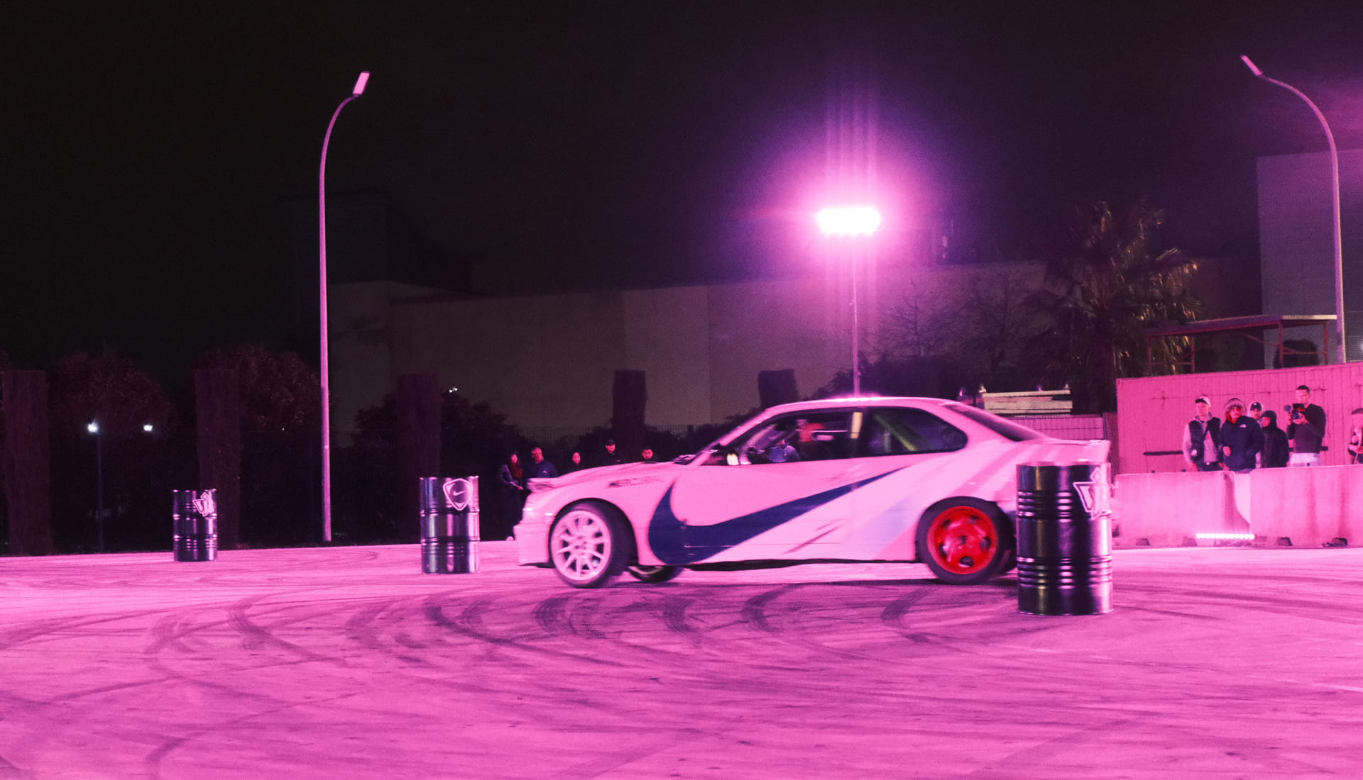 The concept was simple. Joga Bonito meets Tokyo Drift. The beautiful game meets street smoke. And it was perfectly executed. As the night went on, players lined up for a chance to take on no ordinary opponent. No, this time, they were up against a car. Yeah, you heard that right. Ballers were going 1v1 dribbling around oil drums whilst at the time a car was drifting through obstacles in a race against each other. Football vs driver. Skill vs horsepower. Speed vs more speed.