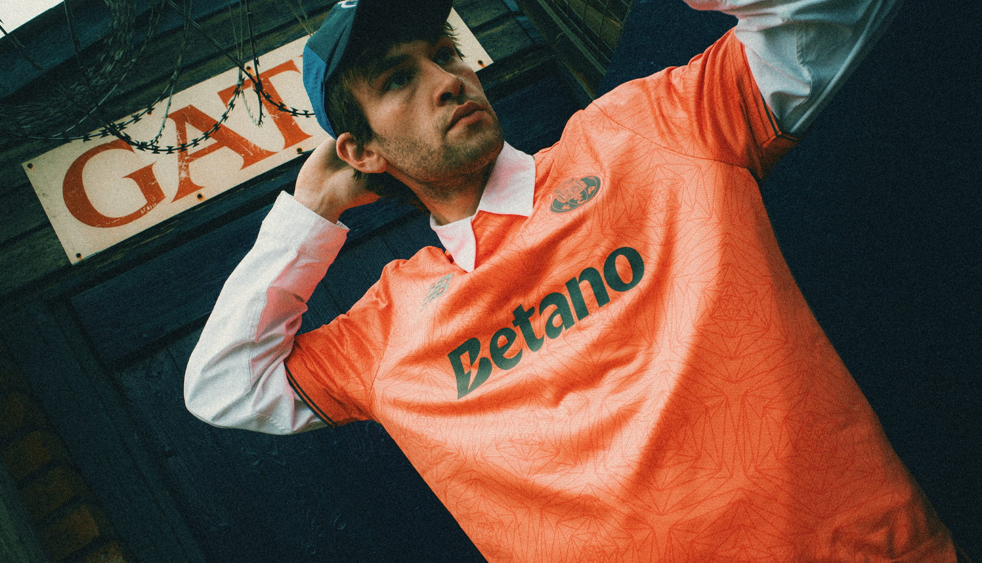 Look closer and the fabric reveals itself. A geometric, almost fractured pattern runs throughout. It’s subtle, tonal, but full of movement. It gives the shirt a sense of energy without overwhelming it. The coral base becomes a living canvas, shifting in light, catching detail as it moves. And in the middle of that controlled complexity, the sponsor has a job to do. This is where Betano finds its balance.