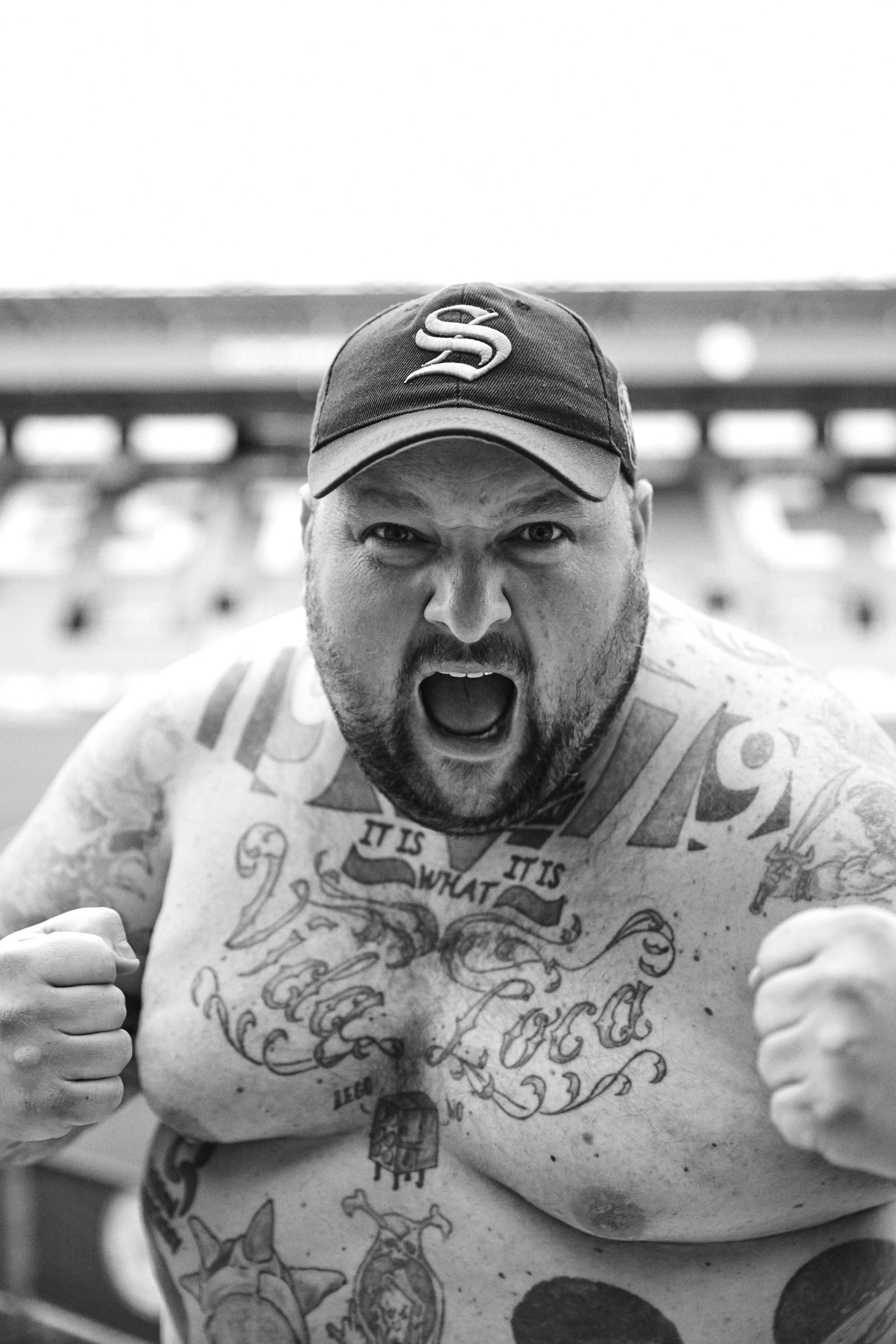 "I had that done in 2005 and at that time I was still going to the games topless. I think that picture of me and my tattoo has been around the world on every form of social media. Last year I thought that the tattoo needs re-doing. As the club are progressing, I’m going to update this too. So I’m still in the process of getting it re-done. The guy who is doing it for me is a good friend and he’s been re-doing it for free as a bit of a present. He’s got some work from people seeing this tattoo so that’s all good. It’s worked out nicely."