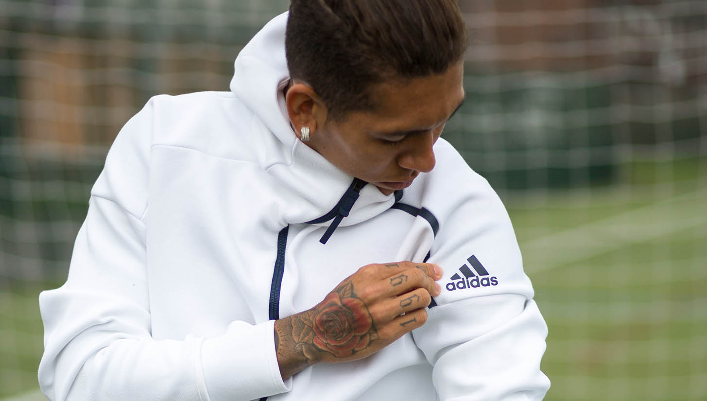 Dressed in the latest innovations from adidas, notably all things Z.N.E, he lifts his hood to accommodate for the conditions and casually starts to describe his first impressions when he joined Liverpool. “Everybody warned me about the weather” he explains, though seemingly well read on the media trained, footballers handbook he adds, “If you work hard it doesn’t matter if it’s raining or not, if it’s hot or cold.” Nicely done, Bob. You’ll go far. Genuinely, however, his body language would imply he’s interested in the events of the day: he’s got his hands on a fresh pair of boots and they seem to tug on the heartstrings. Laceless wonders. Always fascinating to think from youth levels right up to the professional game, whether it’s Maceió, Brazil or Bootle in Liverpool, we all have a connection to those tools or weapons of which we slip into, to play the game. Regardless, not afraid to strike in front of the lens, he’s comfortable. Without hesitation he starts to go further into his move from 1899 Hoffenheim and his current state of mind. “I’ve adapted much better than I expected. It’s a great city and much bigger than the city I used to live in in Germany.”