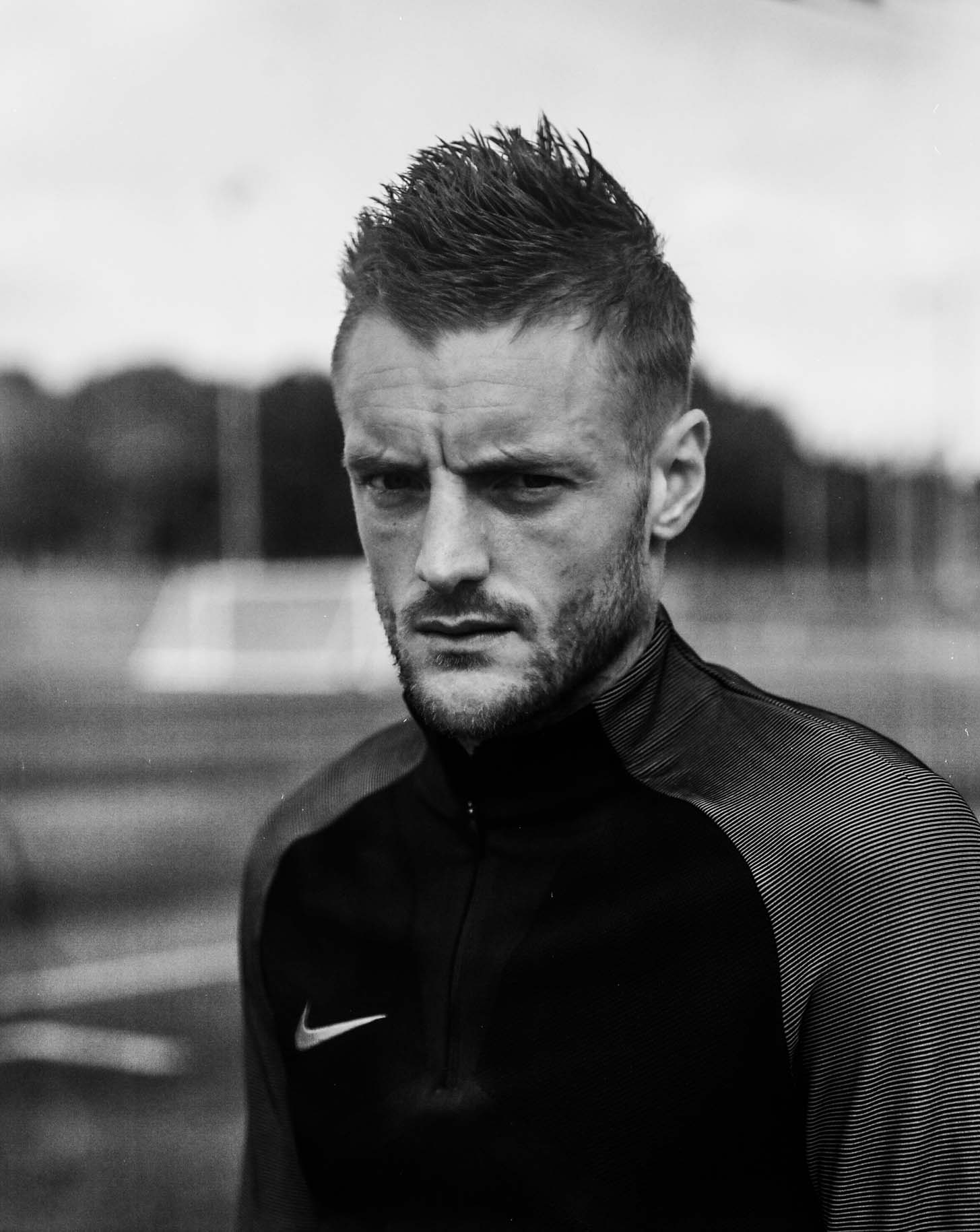 It feels like we’ve met at a pivotal moment. Still unmistakably the man who coined the colourful mantras Leicester fans have taken to their hearts, Vardy remains defiant: “That’s what made me who I am now and I don’t see any point in completely changing who you are.” Yet I worry he will become sanitised and censored, not only by Hollywood, but by the modern football machine that finally swallowed up Big Sam and spat out more besides. We finish up and he’s off to do a further shoot. Walking across the blue painted futsal floor the click-clacking resumes and again he is reprimanded – this time for potentially damaging the surface. He has a quick look round before taking a giant leap in the air, crashing back down to earth studs-first. “Fuck it!” he says. And with that he’s gone.