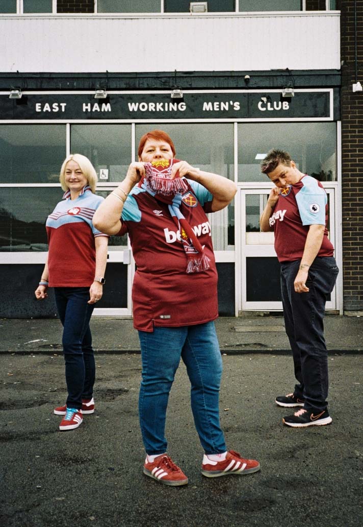 I had this image in my head of a sea of claret and blue worn by supporters of West Ham women, inspired by an album cover I had seen. I thought about how powerful and strong the team colours are, and I really wanted to emphasise that. After speaking to the women that came to the shoot it soon became less about the aesthetics of the image and more about the identities of these women, what they wanted to say and their individual stories.