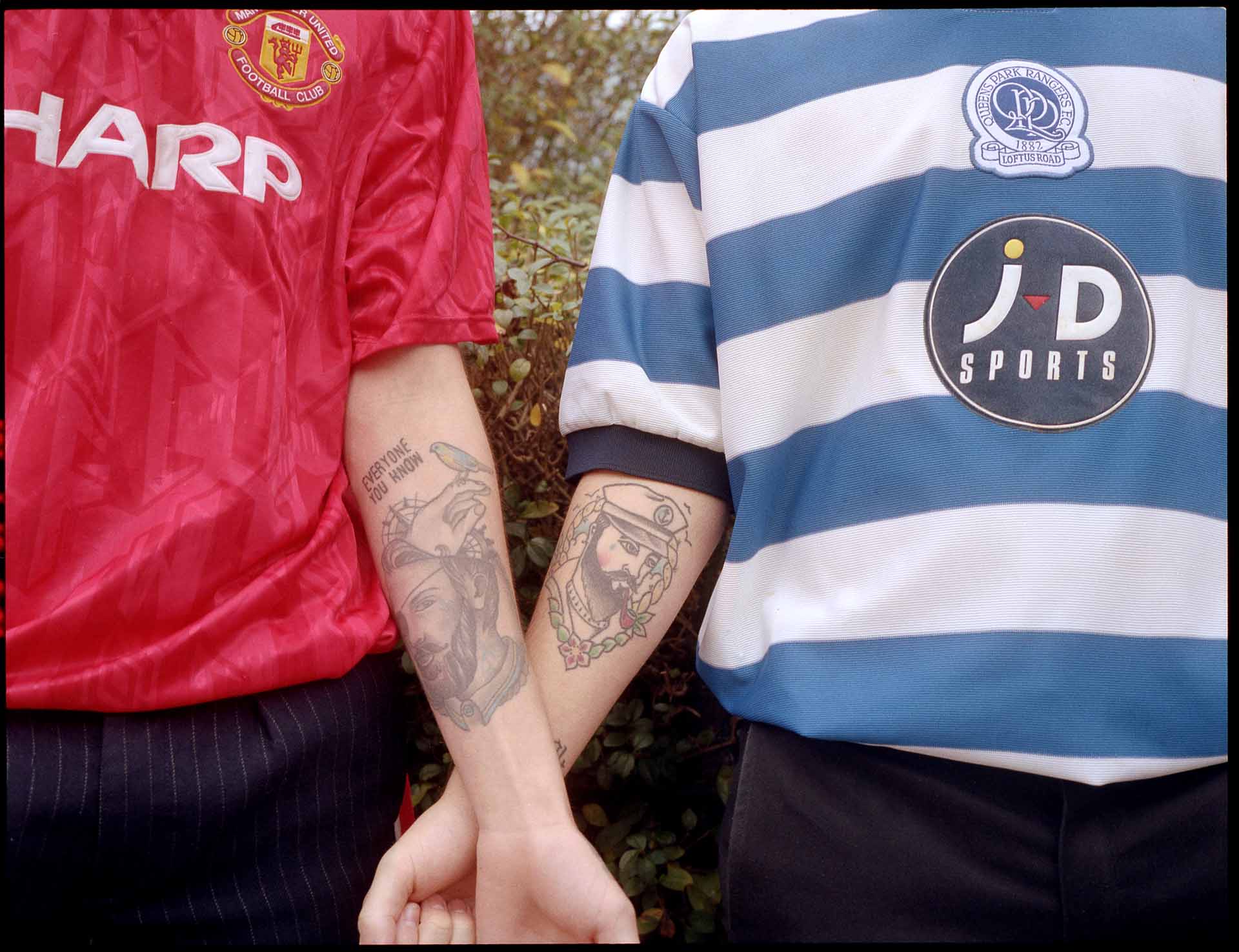 Rhys: Yeah, I’ve got a little collection. My stepdad had them; I just found them in the garage one day. I was looking for a tent to go for a festival, and I found this camping bag. I emptied it out and there was just a load of United shirts there, and the old England Italia 90 top. I was like, fucking hell, what a touch. I’ve got an old Oliver Khan goalkeeper shirt as well – a few random things. There’s something much cooler about older football tops, all the little details that you don’t get these days.