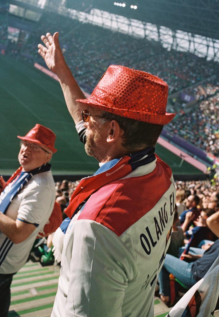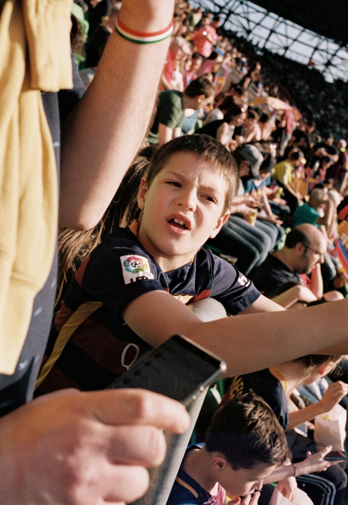 I spent most of the game walking around the stands seeking out moments to capture. Light is an important element for me to look for when photographing in this environment. I got lucky as there was a beautiful golden hour on the evening of the game. The last of the sun was hitting the highest few rows of the stadium, and that was were I captured my favourite shots of the day. I was looking for moments where fans were really in the moment, fully immersed in the game. I was also looking out for moments which reveal the relationships between people at the game – fathers and daughters, friends, lovers. My work focuses on human experiences and those on the fringes of society – so I was looking out for people whose love for the game was coming through visually.