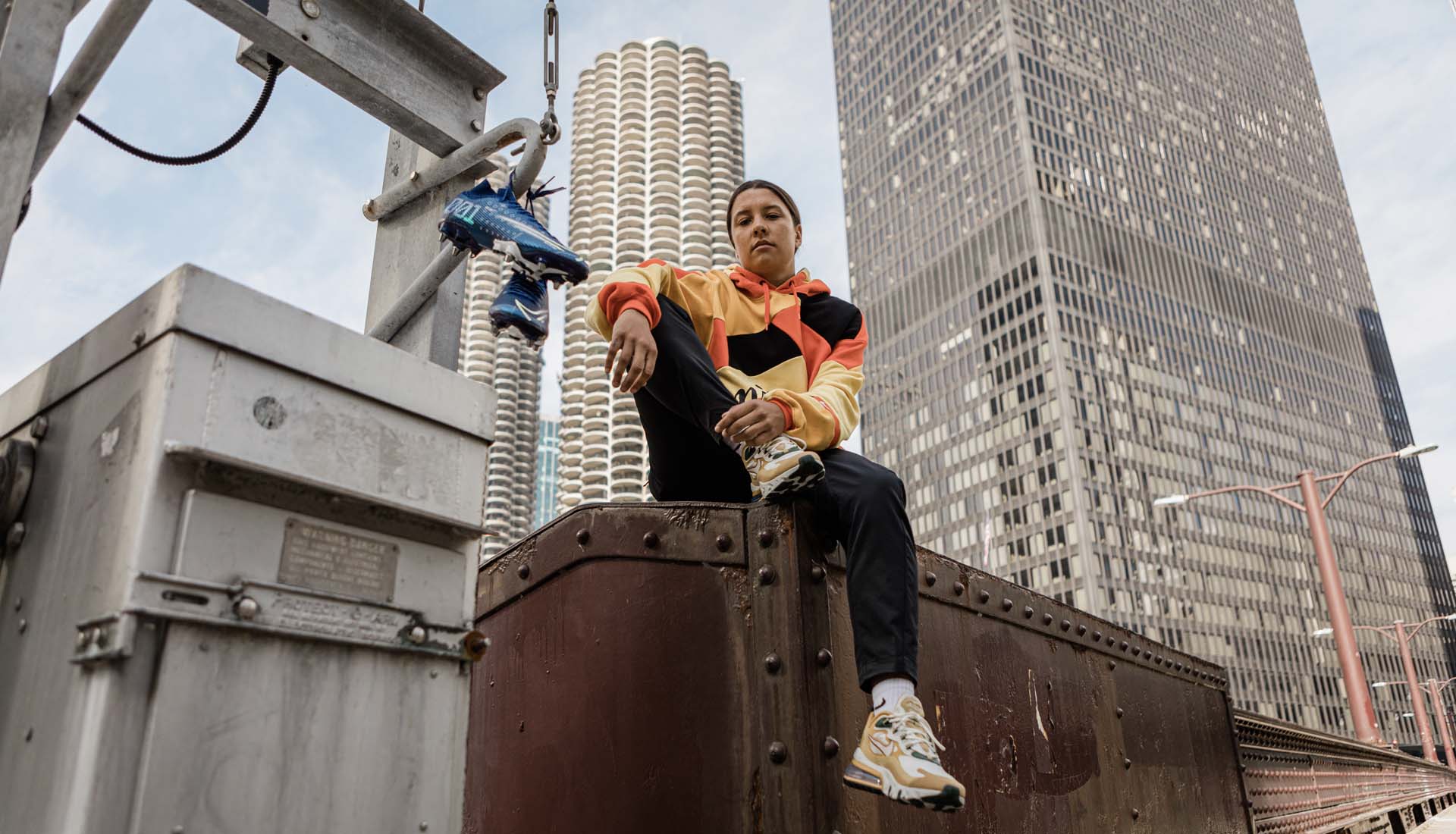 Chicago is where she now laces up the Nike Mercurial ‘Dream Speed’ as one of three athletes to exclusively wear the boot on pitch. Cristiano Ronaldo and Kylian Mbappe are the other two. That's a huge play of confidence on Nike's part, but that selection is backed up with stats and justified on hard work. Kerr is one of the most deadly strikers in the game, and her journey to Chicago is one that comes from self belief, as she explains to us on a walk around her new home.
