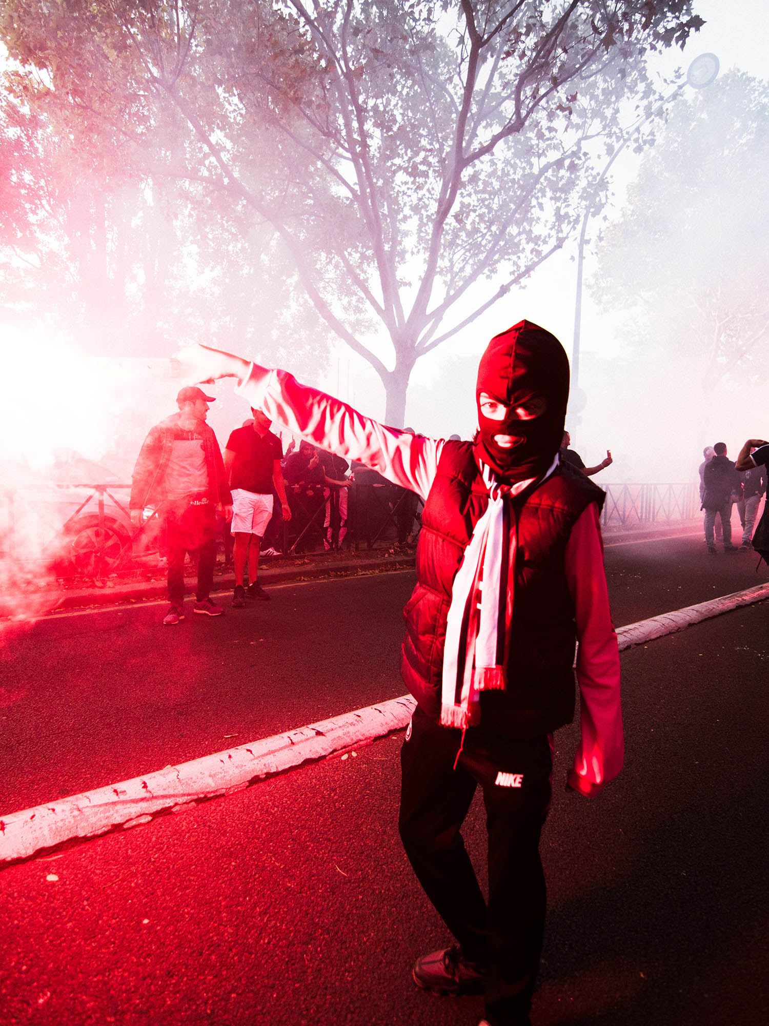 The first time I went to the Parc des Princes, I was 13 years old. I had spent more time watching the ultras than the match! From that moment on, I said to myself "when I grow up, I will be in a kop as well!". I have been in the ultras movement since 2016, which corresponds to the return of ultras to the Parc des Princes. (They were banned from the stadium for 6 years). The first time I started taking photos of the grandstands was a few years ago during a few away matches, because at the Parc des Princes, it's more complicated to enter your camera without authorisation.