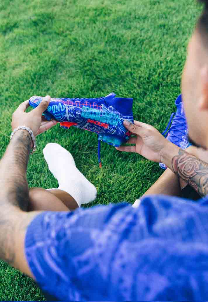 Over the top of that it says “Megz”. Me and my friends used to just have competitions around who could do the naughtiest skill and for me, it was all about Megz. Nutmegging people and making people laugh was the vibe back then. The Sancho sauce… I’m collaborating with Nandos and I like that reference, that all made sense to me. Also it says ‘Vibez’ on there...you know when you play football with your friends on the estate, it’s just a vibe. So I just tried to put everything into this boot and I think it’s sick.