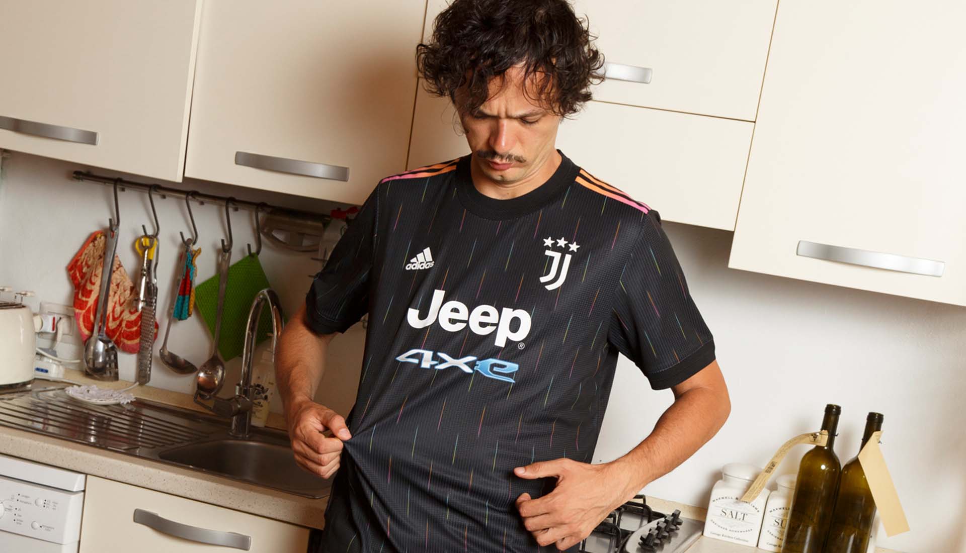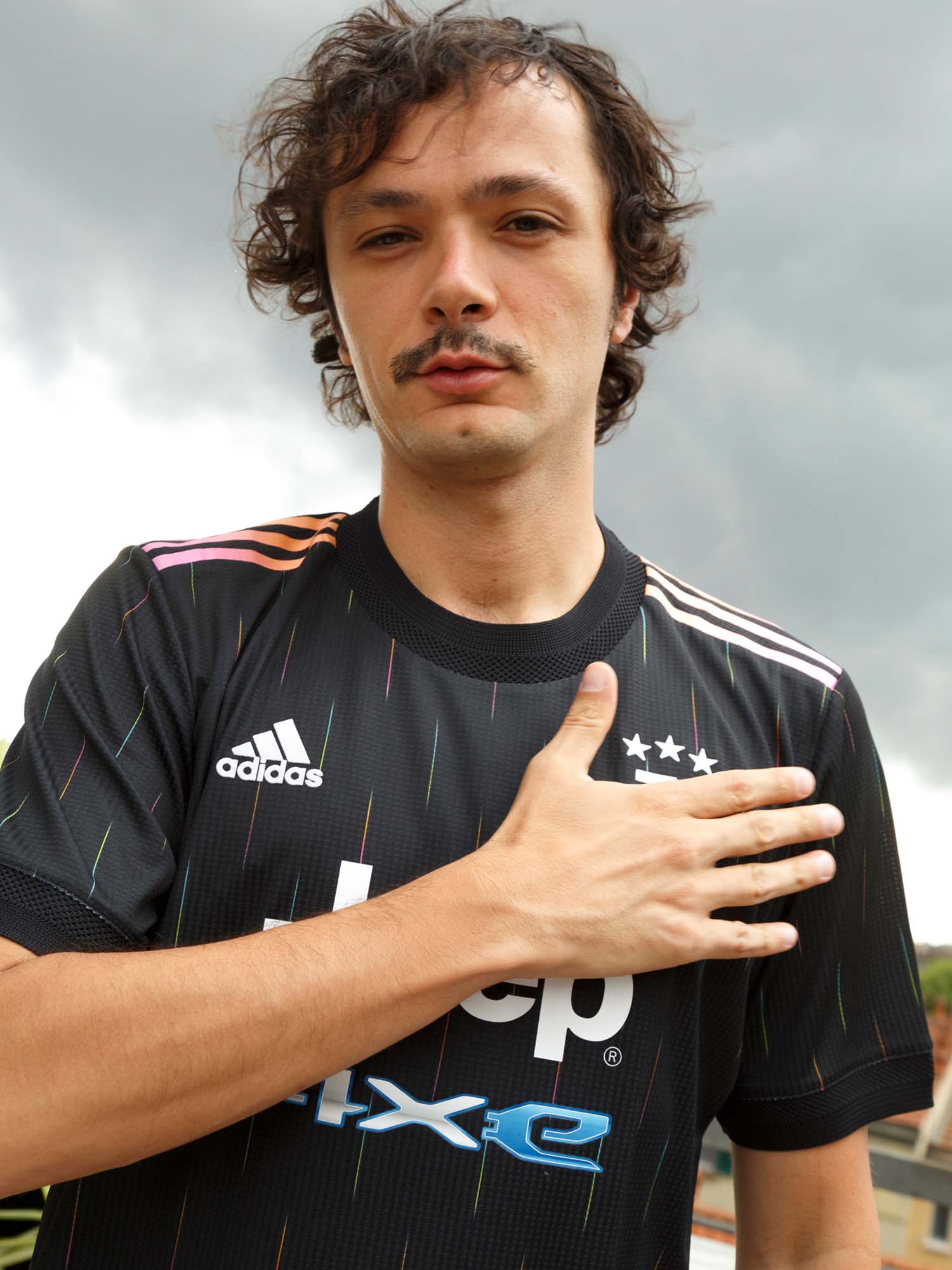 Football and music, music and football: hard to say in what order they come for Carlo Pastore, with the two forming pillars of his identity. Music is his livelihood, but football – and specifically Juventus – is in his heart. The launch of the new Juventus away shirt for the 21/22 season saw a crossing of both of these worlds that seems tailor-made for Pastore – the shirt is inspired by C2C (formerly known as Club To Club), a festival that he is on the billing for – so he was a natural fit for the launch video, put together by adidas. Following his involvement, we spoke with him to get his view on both cultures, and the crossing of his two worlds.