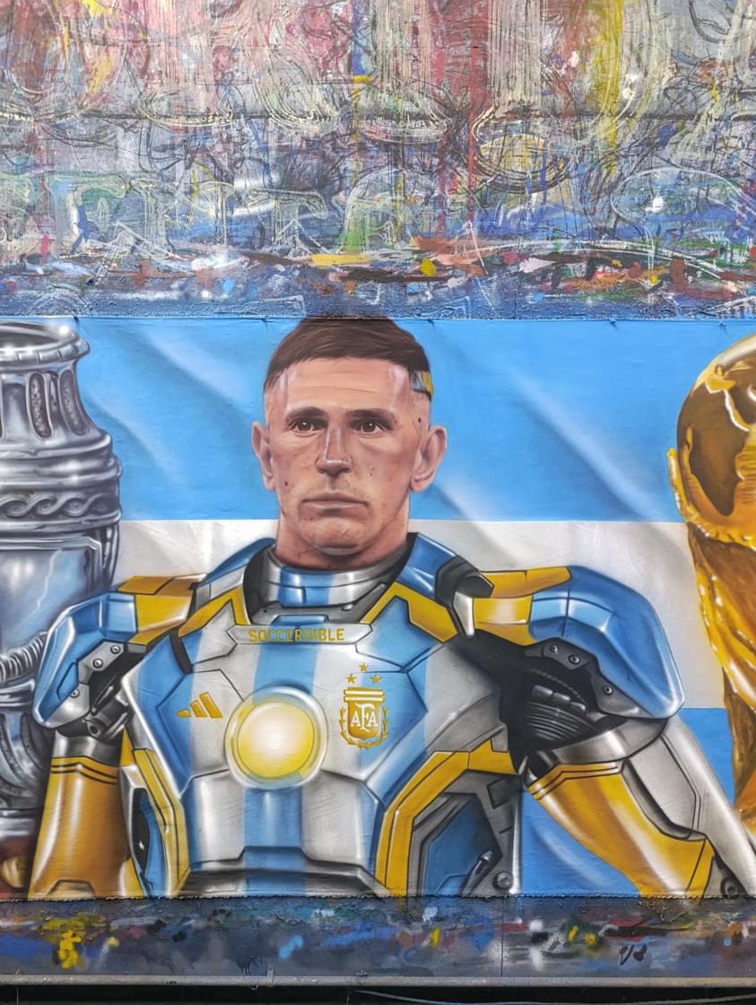 This style can be traced back more than two decades when Perretta took a course to paint his motorcycle. He didn’t know then that this would lead to working with 167 teams from 29 countries. It all started, though, with a commission from some Boca Juniors fans. Since then, Perretta’s work has been commissioned by fans and rivals worldwide, including his beloved Nueva Chicago and the Argentinian national team.
