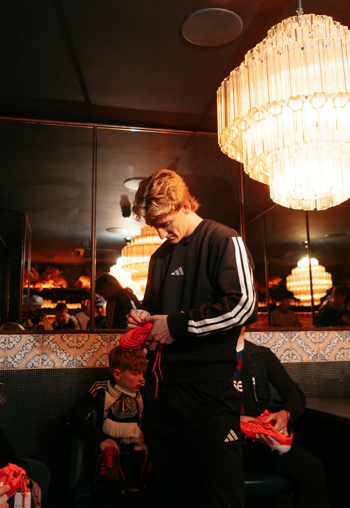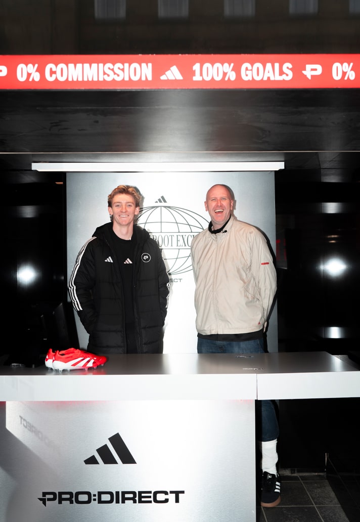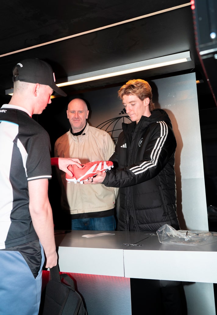 Recently, adidas and Pro:Direct Soccer joined forces to hold their first-ever boot exchange. Located in Newcastle, the event was opened by star winger Anthony Gordon, and it saw fans turning out in their droves to swap an old pair of boots (didn’t even have to be adidas boots!) For a brand new shiny pair of Predators. We just happened to find ourselves in the area (not trading in our old Dunlops, swear…) and we were able to wangle a bit of time with Gordon.