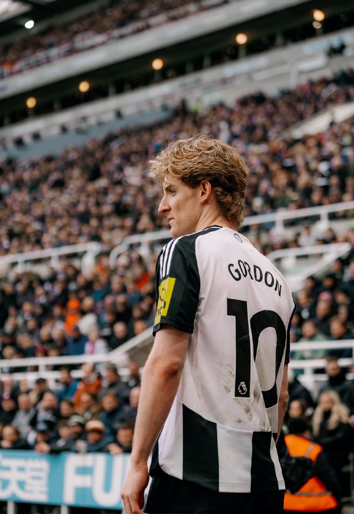 Newcastle may be a reasonable slog away from his Merseyside roots, but for Gordon it turns out, the transition has been anything but difficult. "I feel really settled,” he explains, which is backed up by his laid back body language. “It’s actually quite similar to where I’m from, so it wasn’t a huge adjustment. Both are proper working-class cities where football is everything. The people here are down-to-earth, humble, and completely invested in the game. That kind of passion creates the best fanbases."