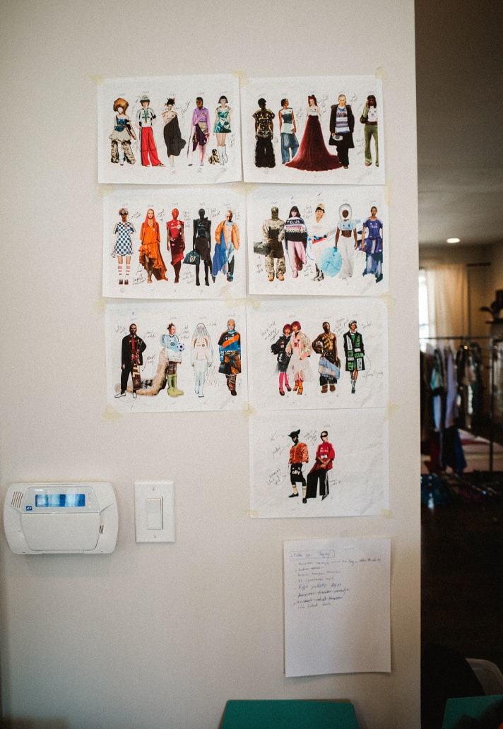 It might sound unbelievable, but the entire collection—from the moment I got the project to the day of the show—was created in just 10 days. Every waking hour was spent researching, designing, and constructing. Most of my time was dedicated to understanding the inspiration behind each piece, diving deep into fashion and football history, sketching designs, and experimenting with ways to manipulate each jersey and ensemble.