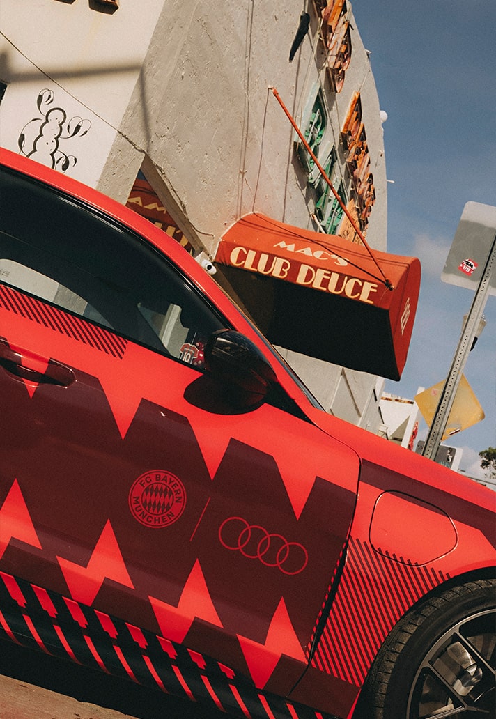 As part of the Club World Cup celebrations, the streets of Miami were recently transformed into a runway for creativity, with FC Bayern, Audi, and club legend Elber at the wheel. Enter Daniel Zuliani—a photographer whose lens lives where sport, street, and soul collide. We linked up with Zuliani to capture a moment that was anything but ordinary: the Audi RS e-tron GT Performance in full Bayern regalia, carving through Miami’s layers of culture and chaos.